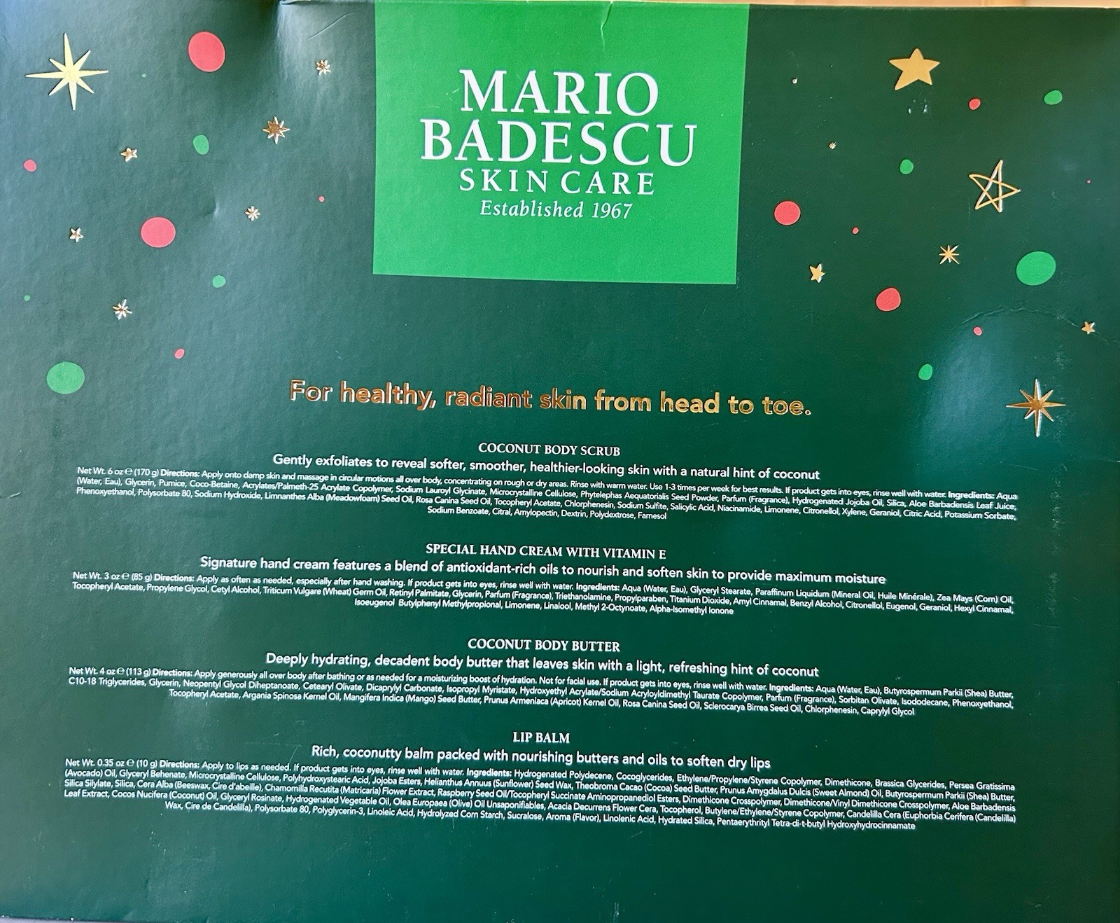 MARIO BADESCU Skincare 4pc SET NIB Scrub, Hand Cream, Lip Balm, Body Butter