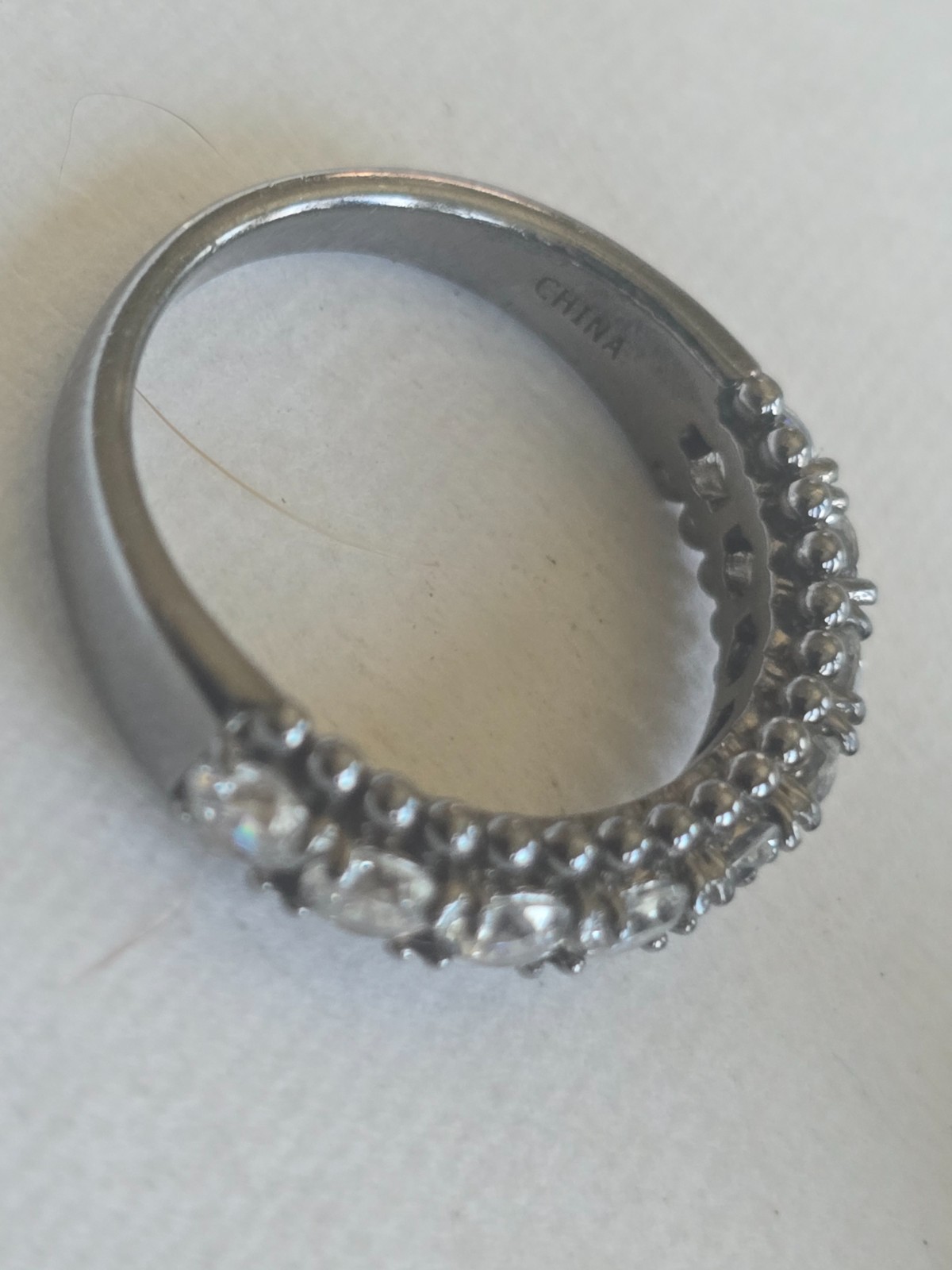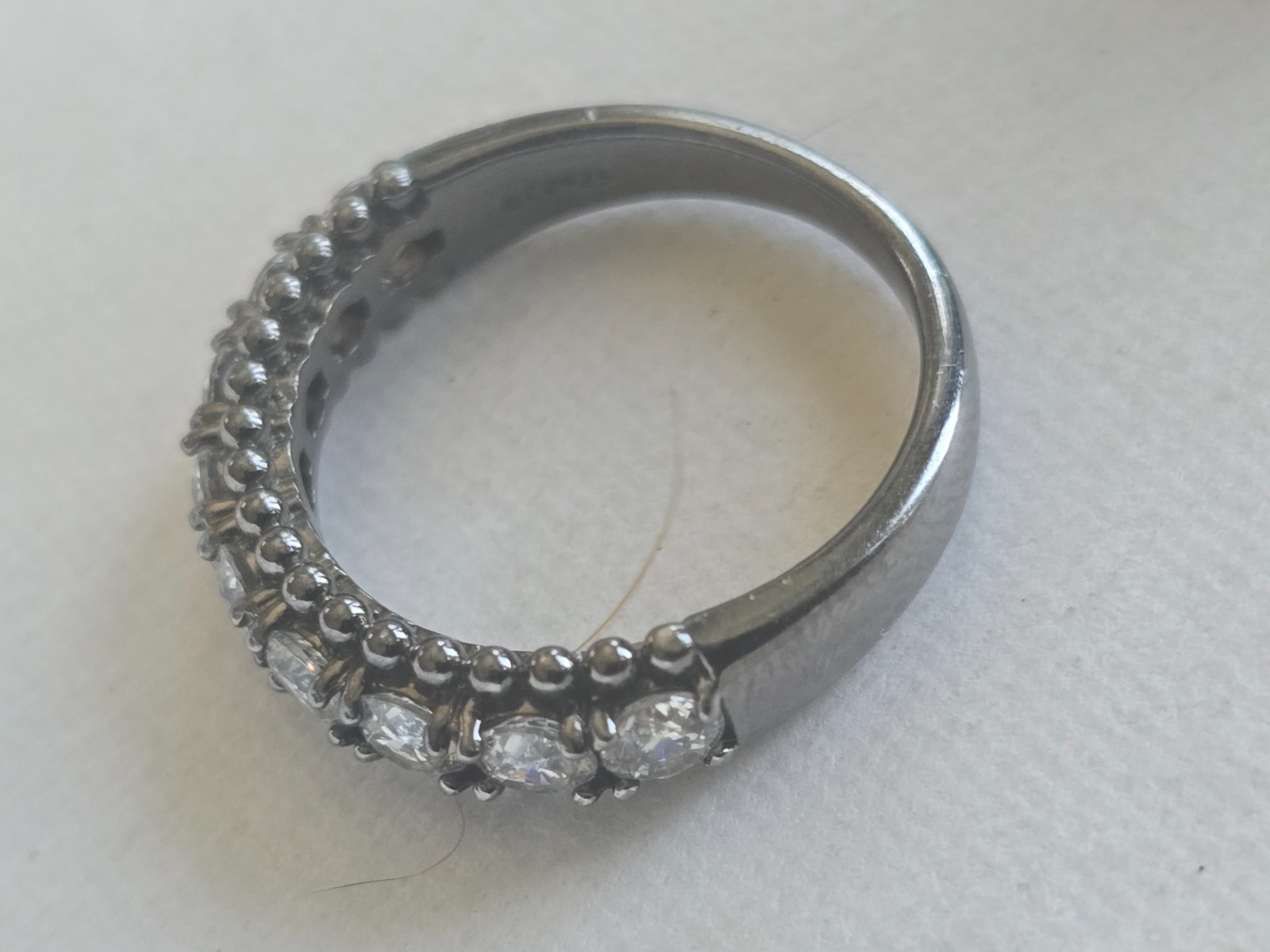 как выглядит 925 Sterling Silver Clear Cubic Zirconia CZ Band Ring Size 8 фото