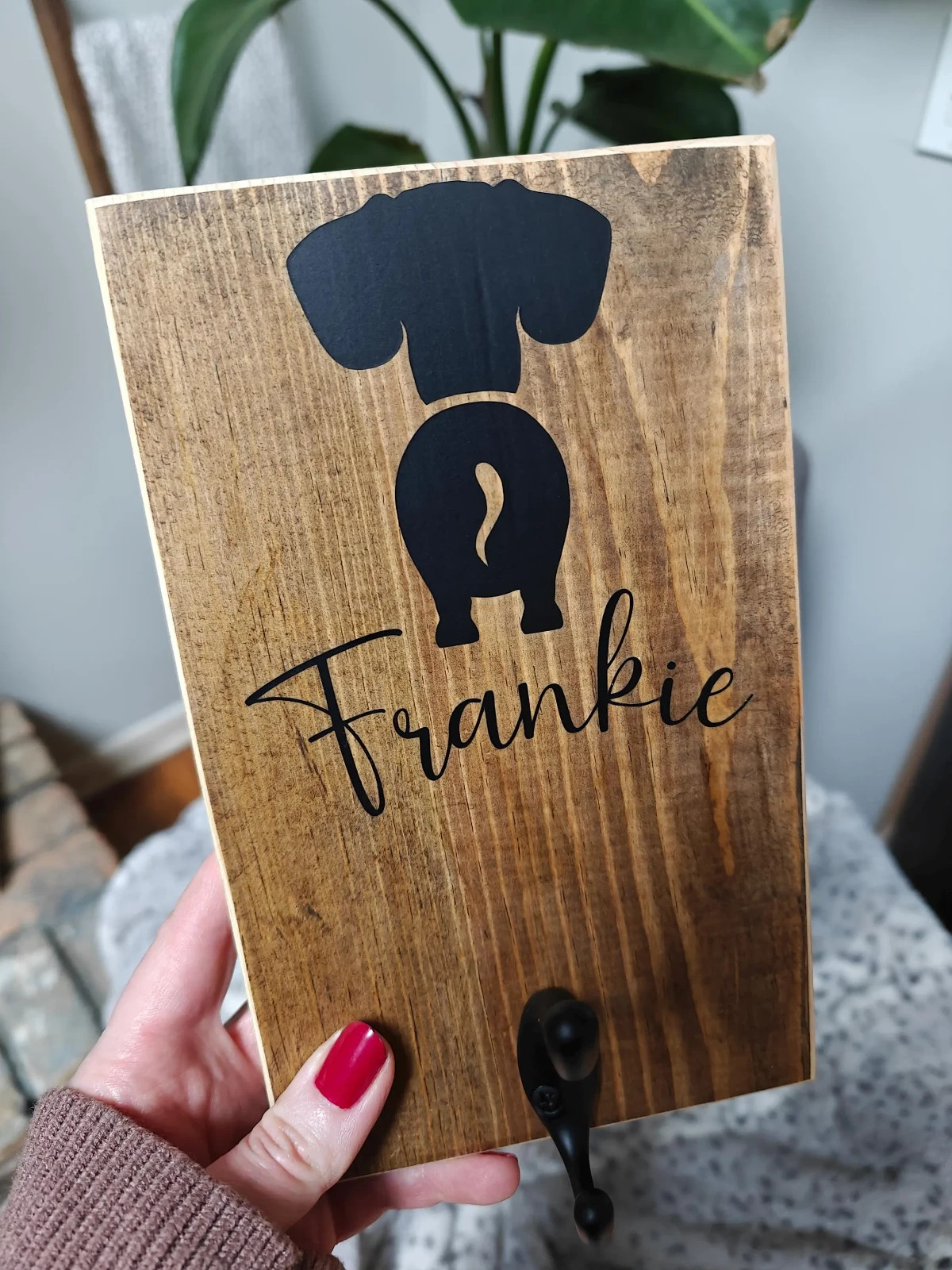 Personalized Wooden Dog Leash Holder for Wall Custom Wood Hook Sign Dog Name