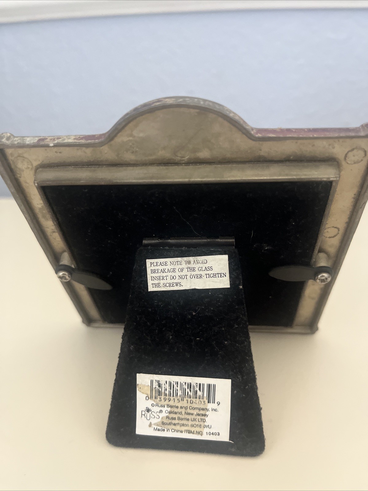 • Vtg Russ Pink Baby New Arrival Picture Frame Metal Rustic Rose HTF