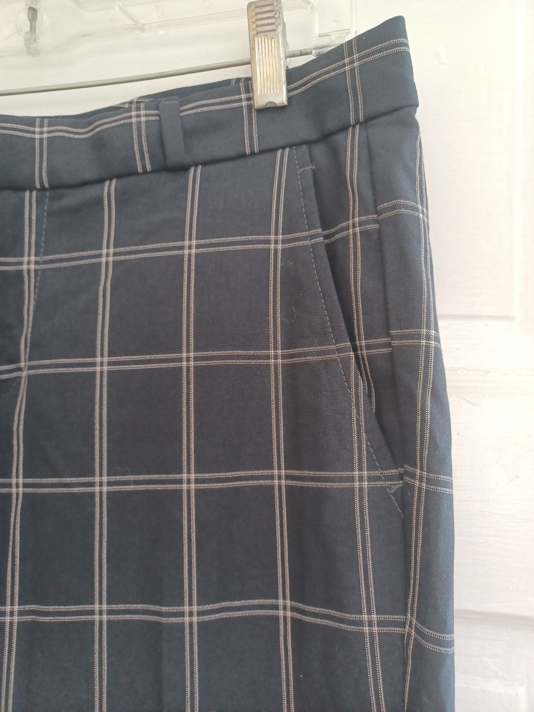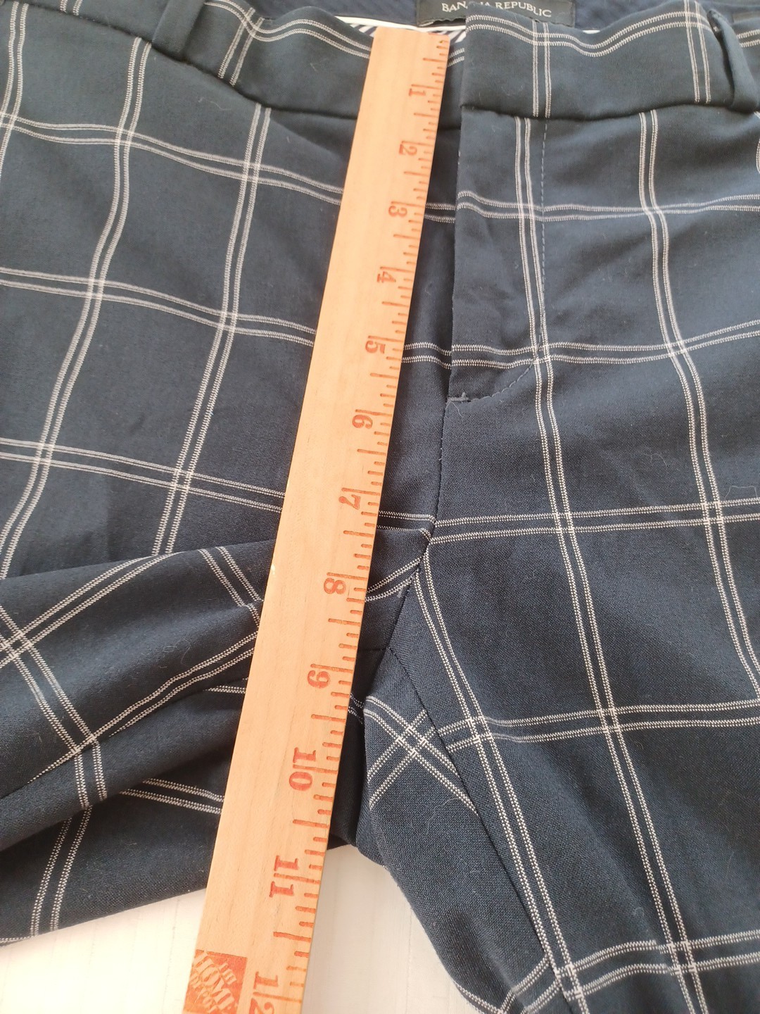 как выглядит Banana Republic navy plaid Ryan pants womens 4 stretch menswear office preppy фото