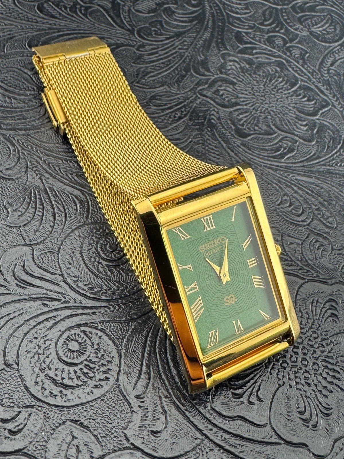 как выглядит GOLD GREEN Vintage Seiko Slim Quartz Men s Wrist Watch фото