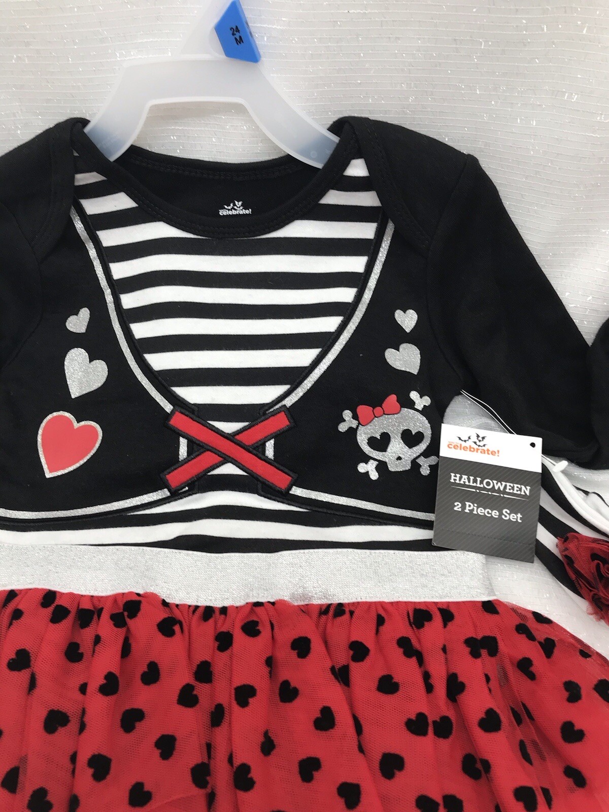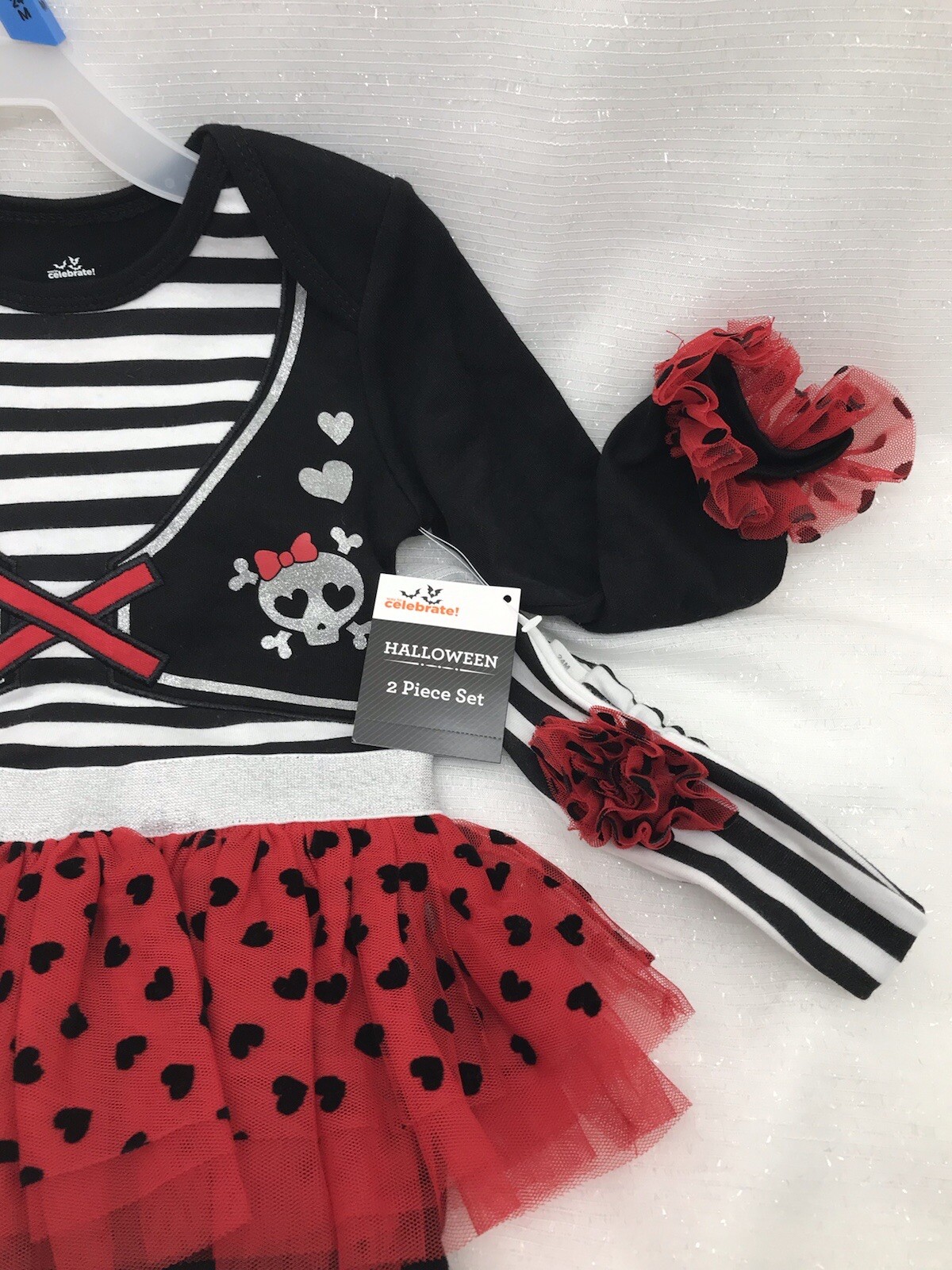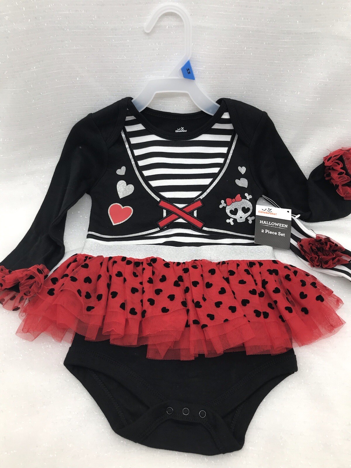 Toddler Girls Halloween Black Red White Skull Tulle Skirt Bodysuit Creeper 24M