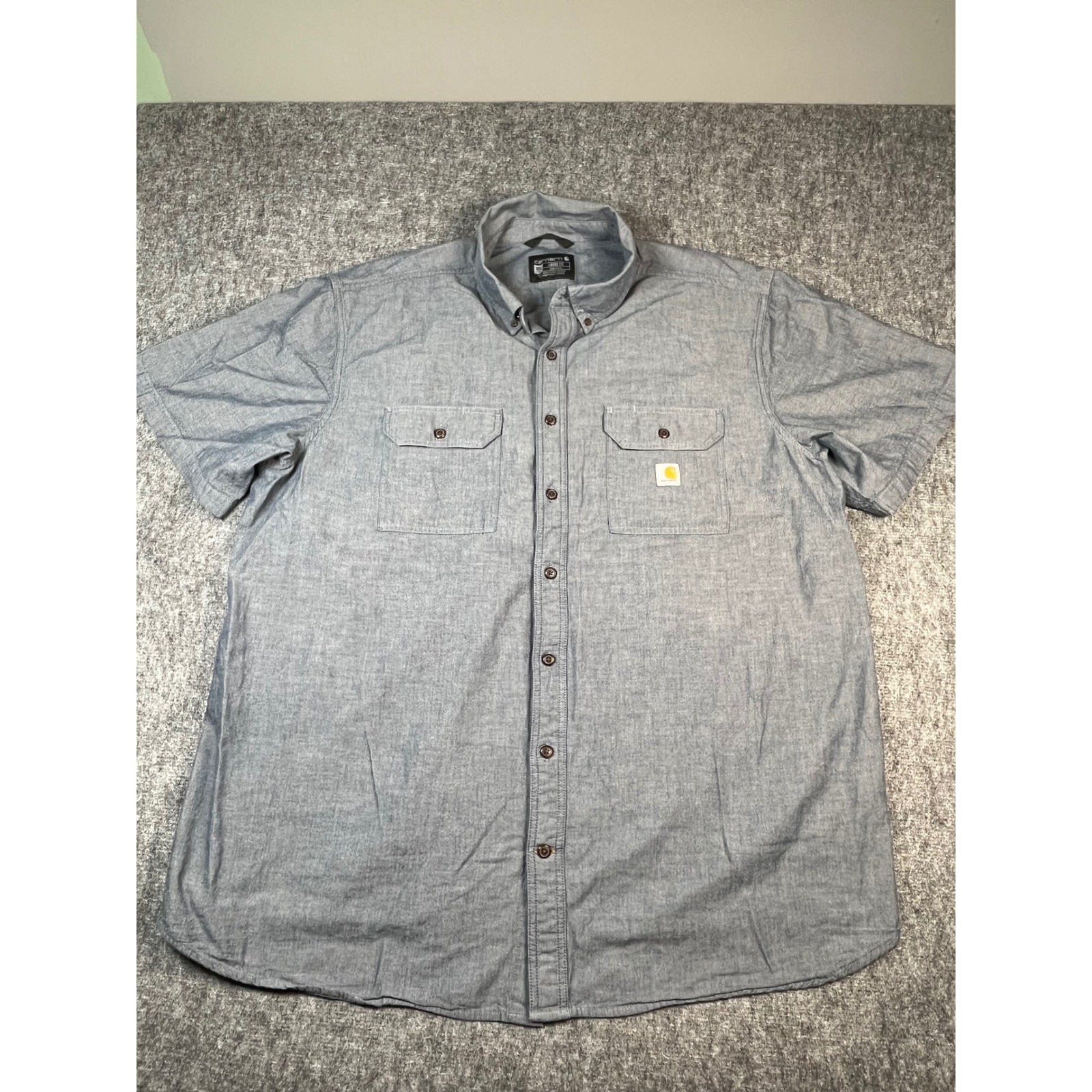 Carhartt Mens 3XL Tall Blue Chambray Workwear Button Up Short Sleeve Shirt