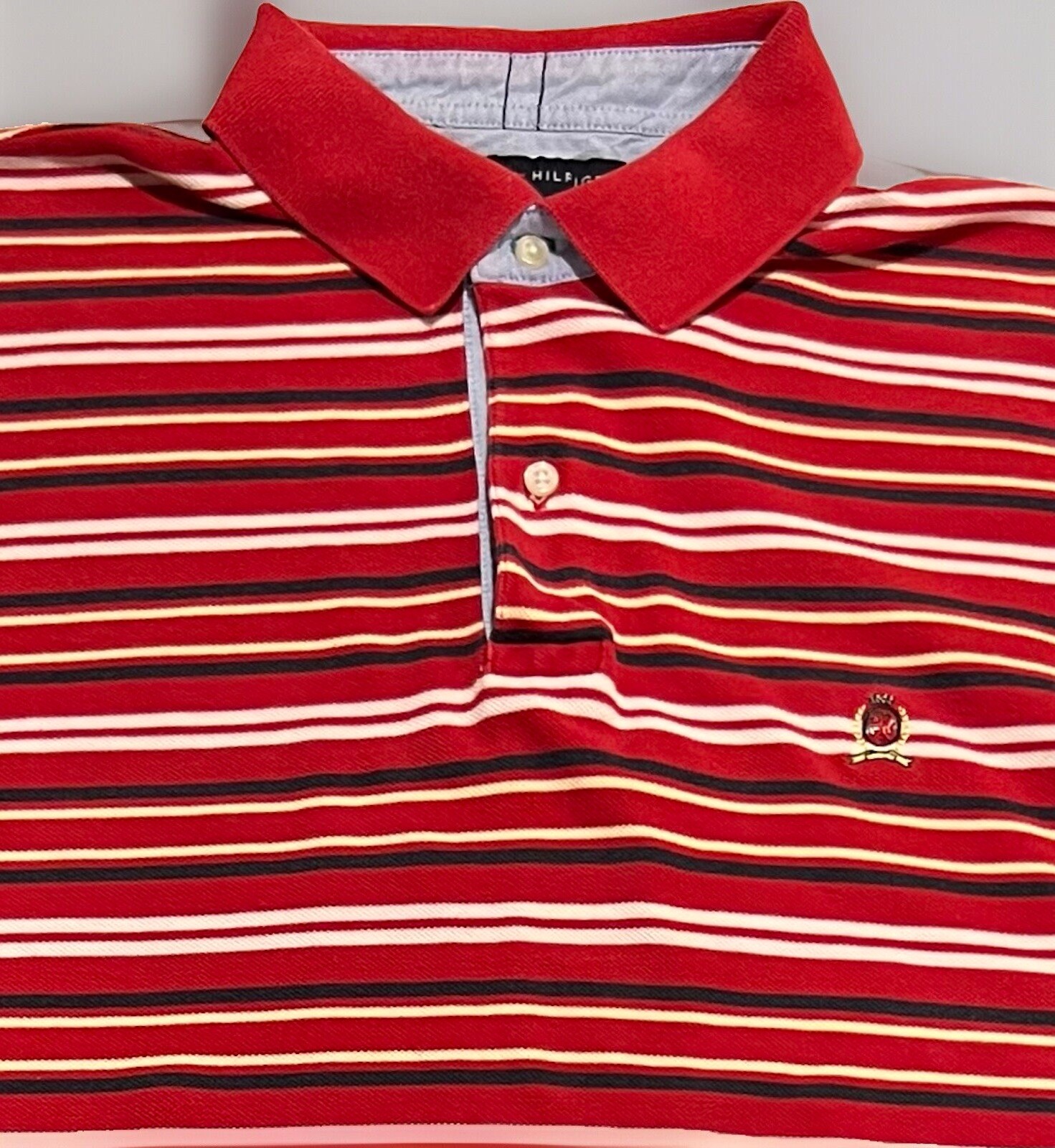 Tommy Hilfiger Mens XL Polo Knit Red Blue Stripes Short Sleeve Shirt