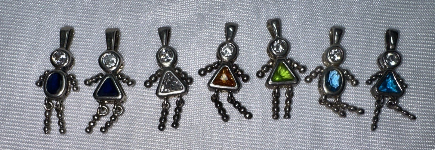 7 Silver Birthstone Crystal Children Pendant Charms 2 Marked Sterling 925