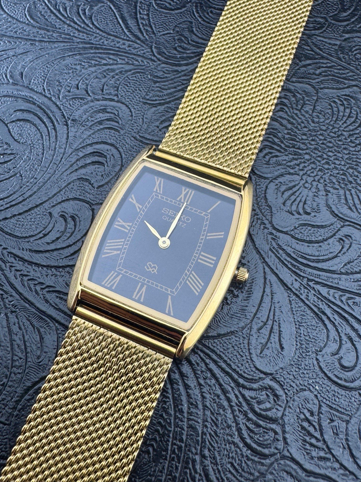 как выглядит BLACK DIAL Vintage Seiko Slim Quartz Men s Wrist Watch фото