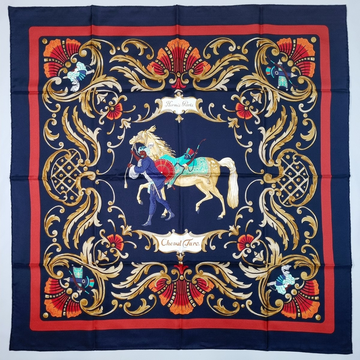 RARE VINTAGE HERMES Silk Scarf Cheval Turc Carre 90 Duty-free US
