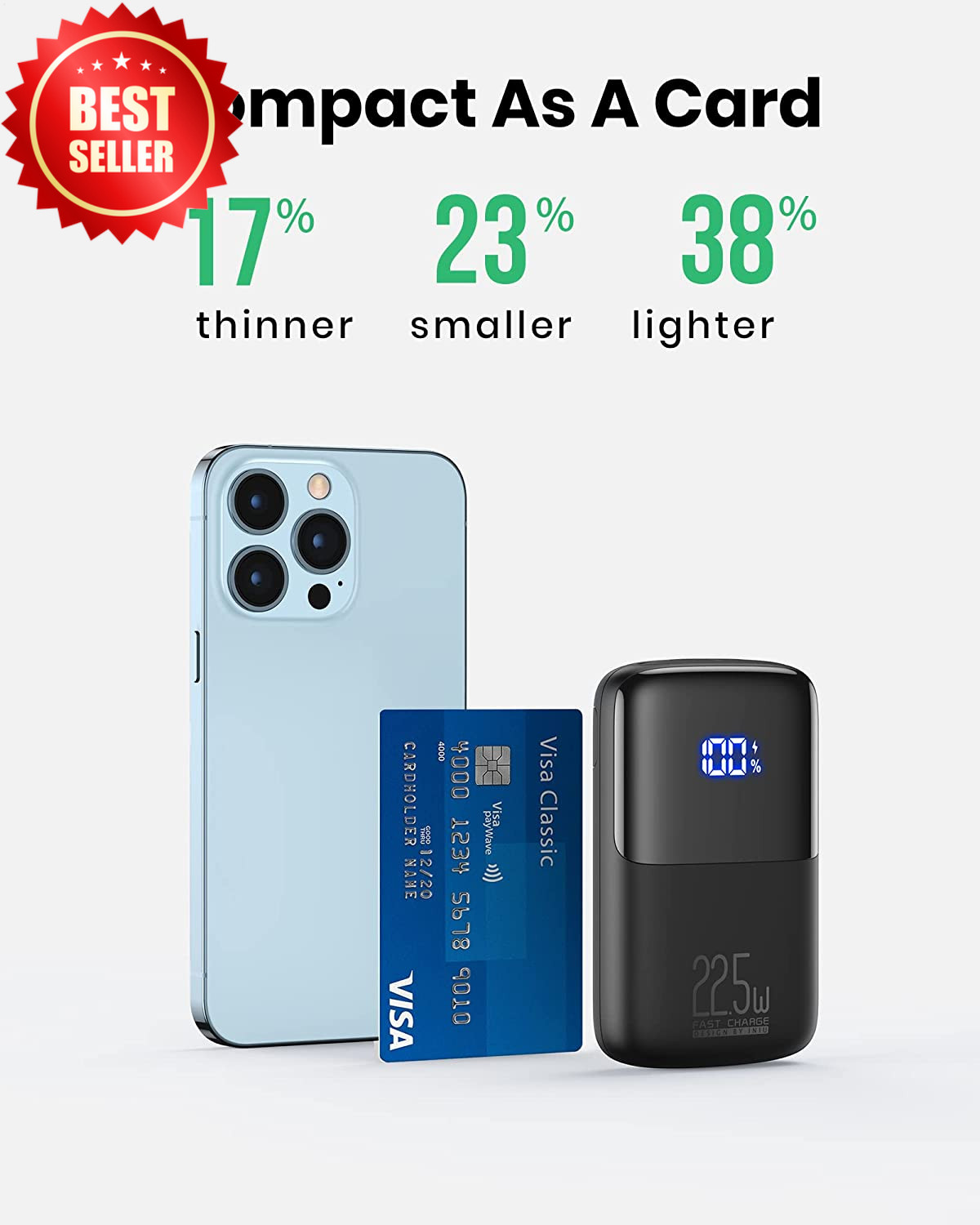 Mini Power Bank 10000mAh 22.5W Fast USB C Charger with Phone Holder for iPhone