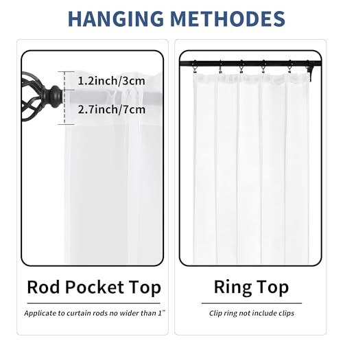 Semi Voile Sheer Small Curtains 54 Inches Long 2 42W x 54L Pack of 2 White