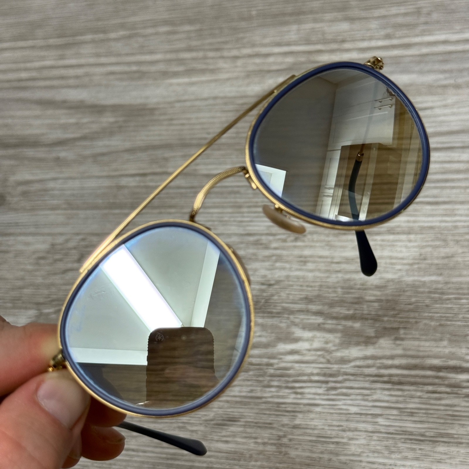как выглядит Ray-Ban RB3647-N 001/9U Gold Blue Round Double Bridge Sunglasses 51-22-145 Italy фото