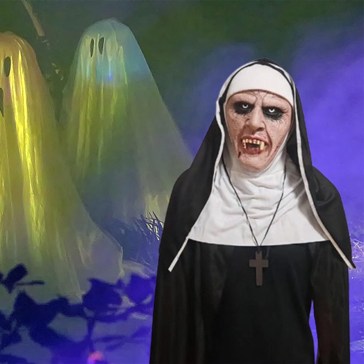 как выглядит Scary Nun Masks Halloween Nun Creepy Latex Full Head Mask Spirit Gothicl horror фото