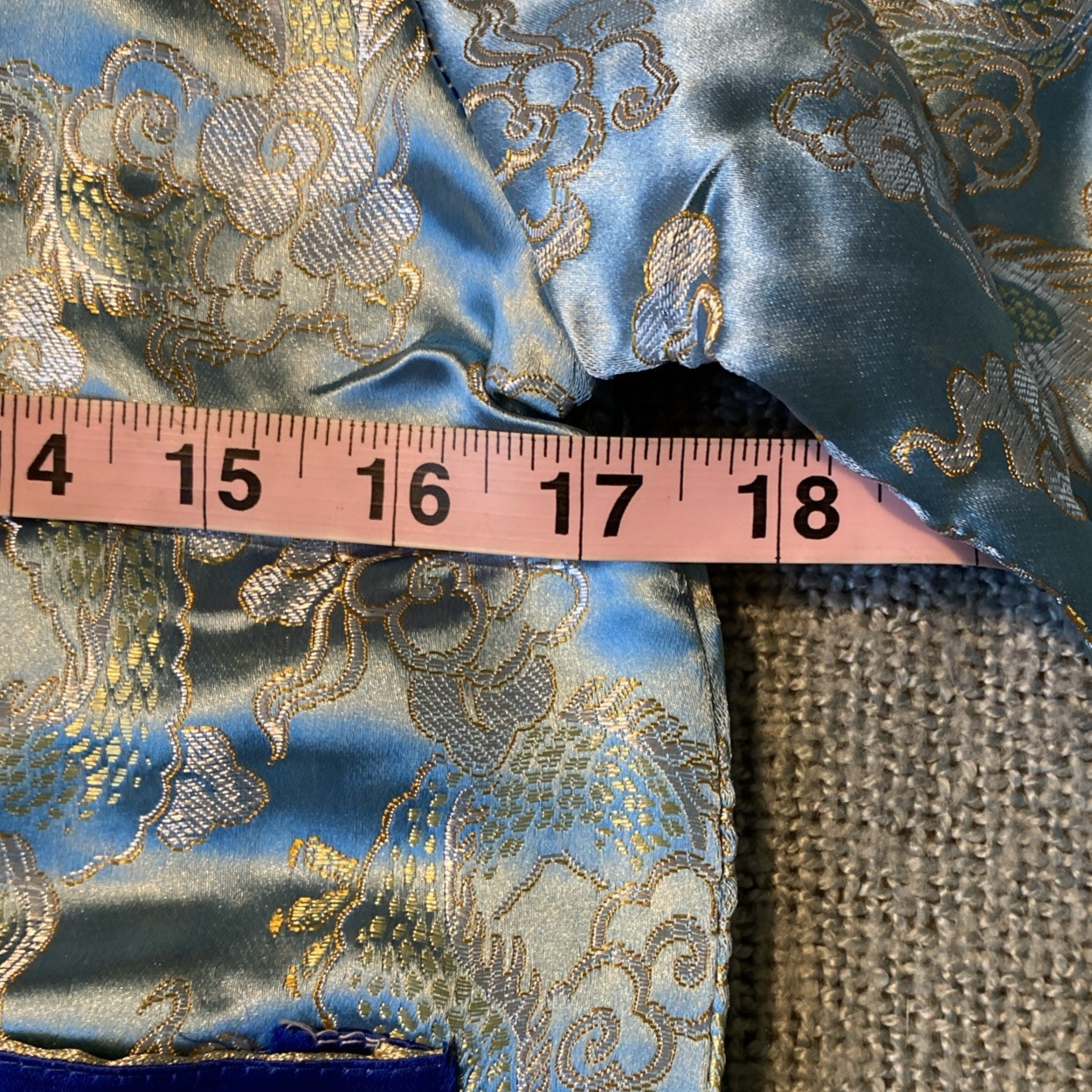 как выглядит Chinese Silk Pajamas Costume Childs Size 11 Blue Dragons Asian 3 Piece Hat Braid фото