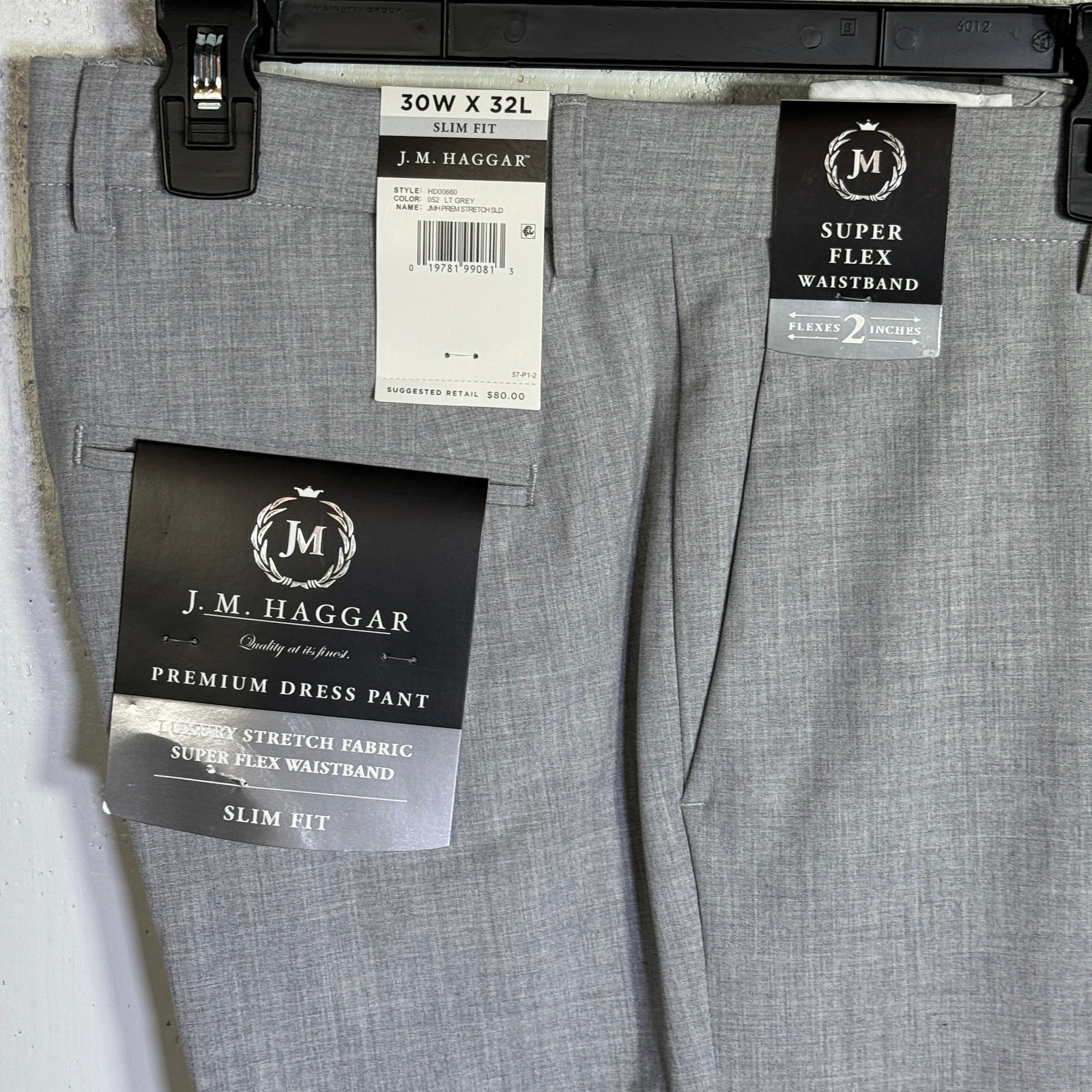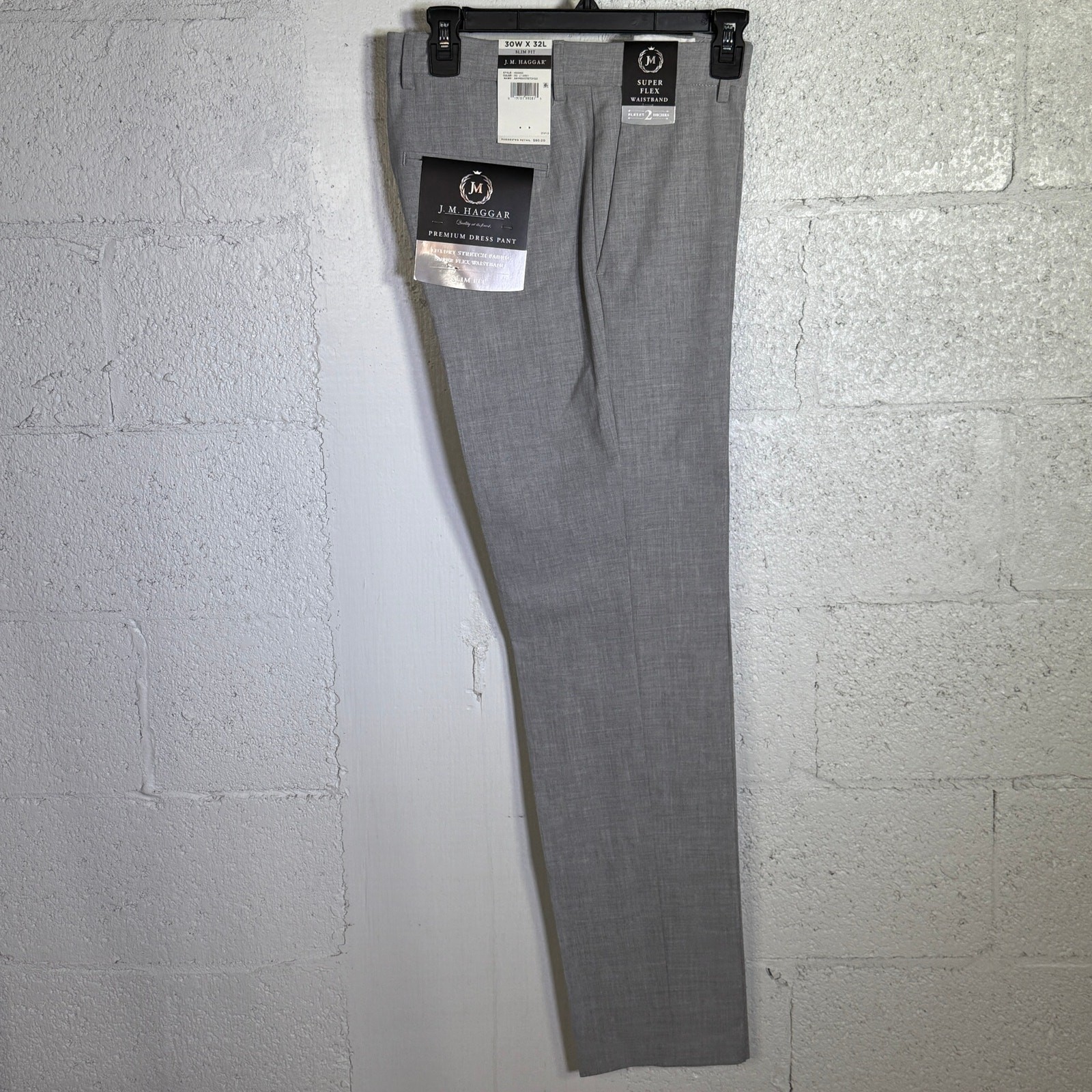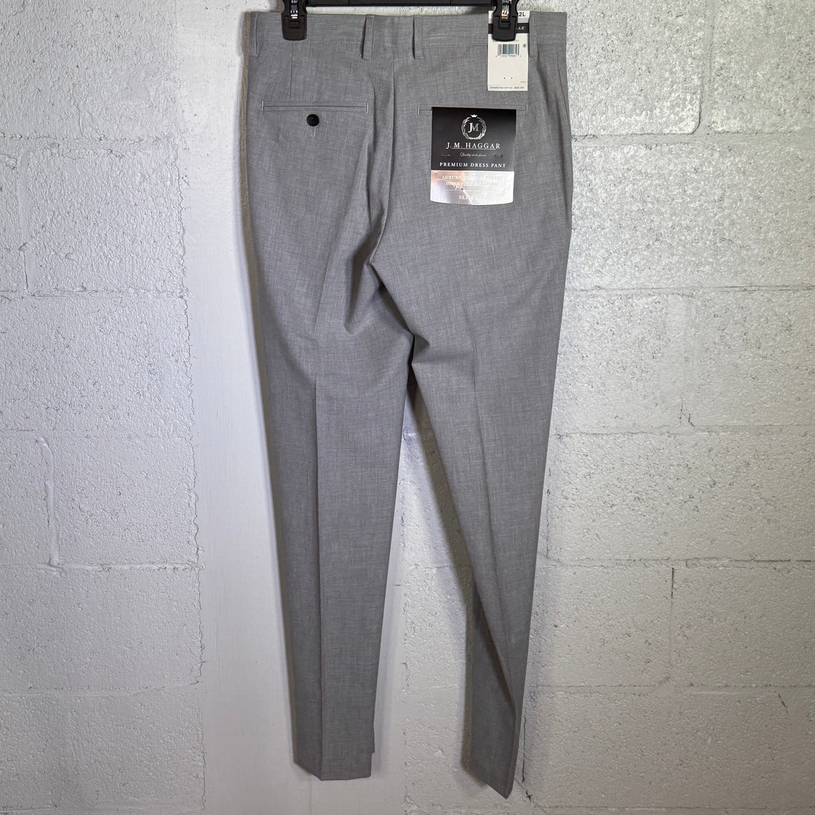 как выглядит J.M. Haggar Premium Slim-Fit 4-Way Stretch Flat-Front Dress Pants gray 30X32 80 фото