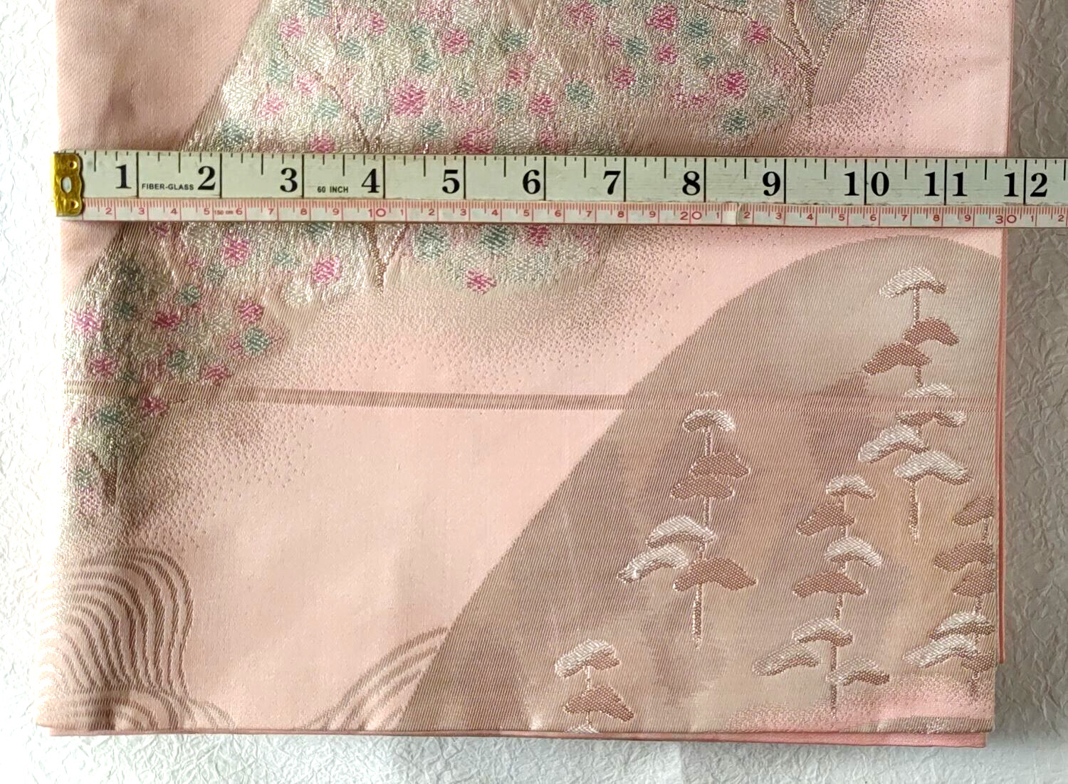 как выглядит Japanese Vintage Kimono Fukuro Obi Silk Pink Silver Blue Mountain Wave фото
