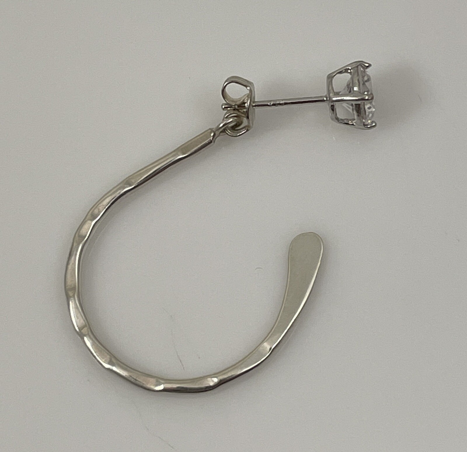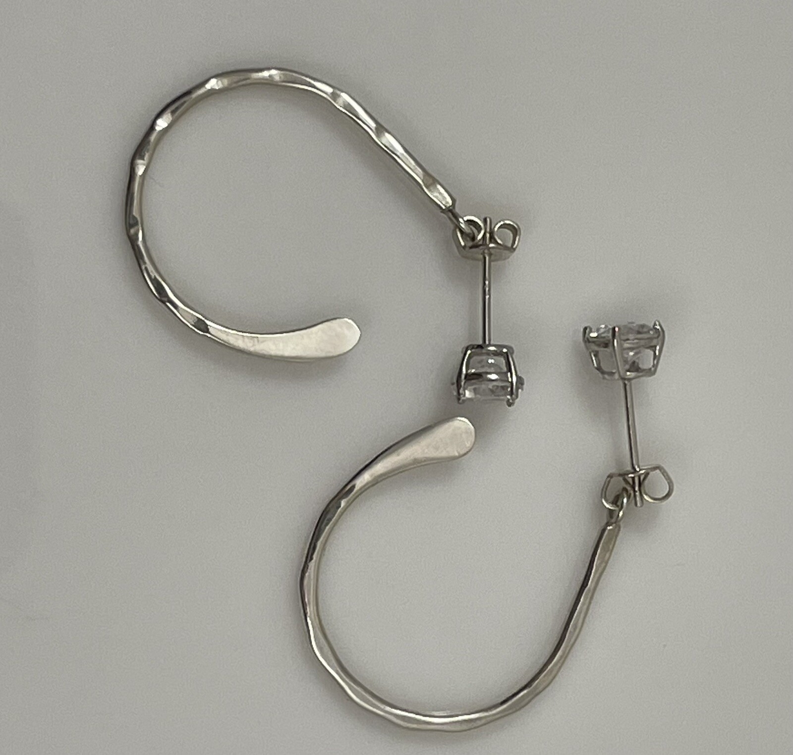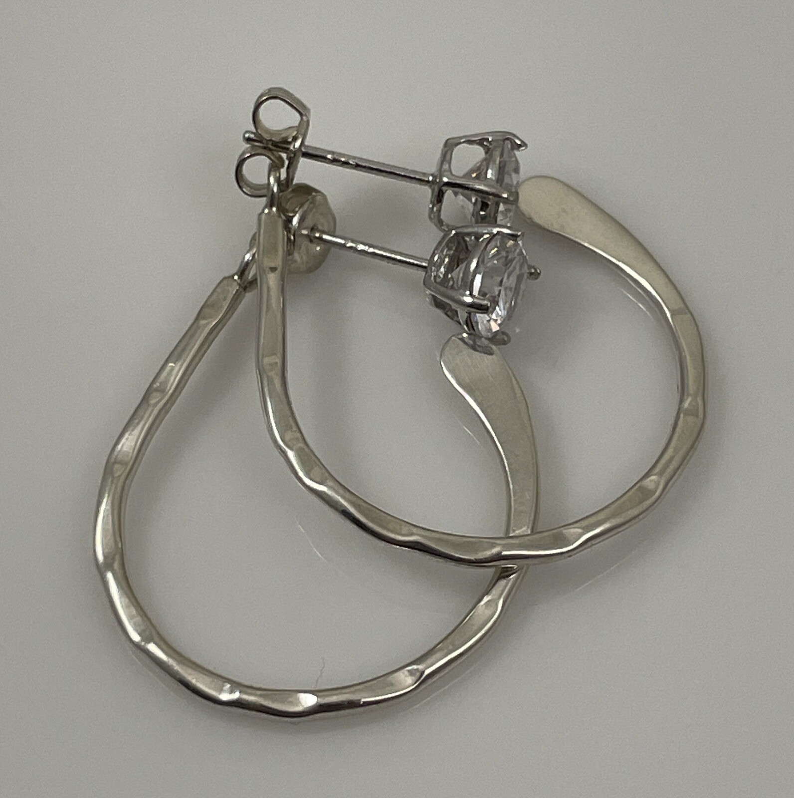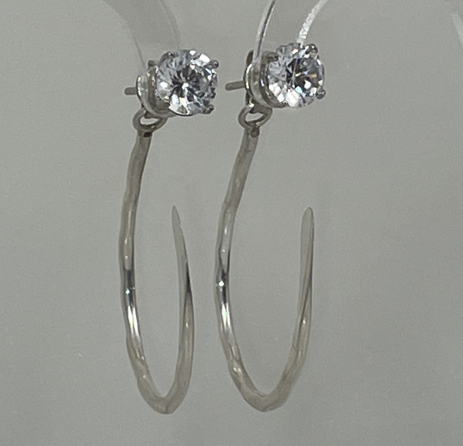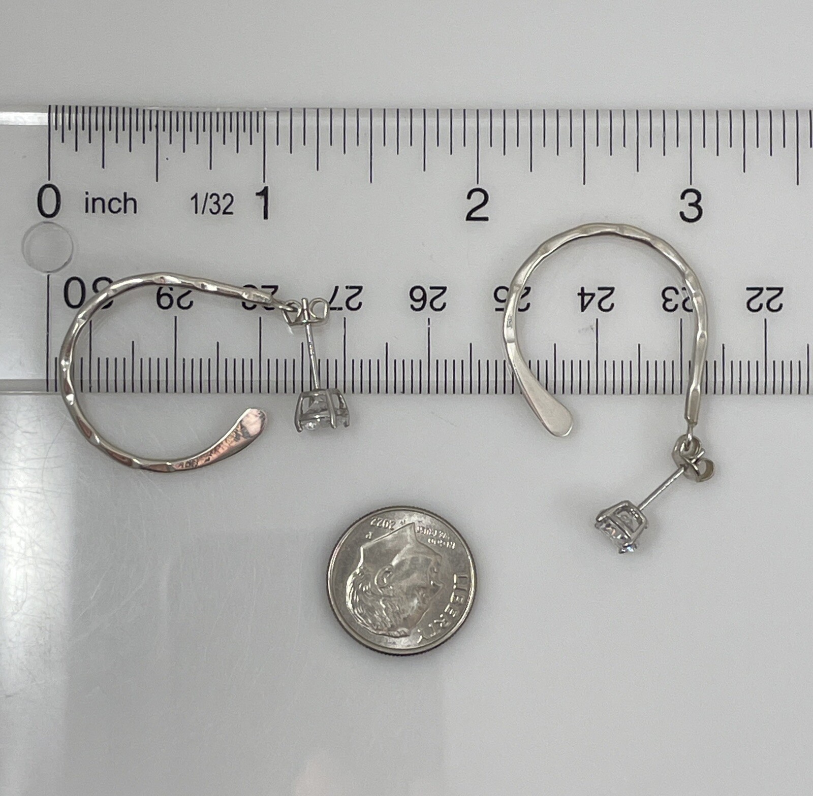 925 Sterling Silver Dangling Hoop Back CZ Stud Earrings 1.25 Jewelry