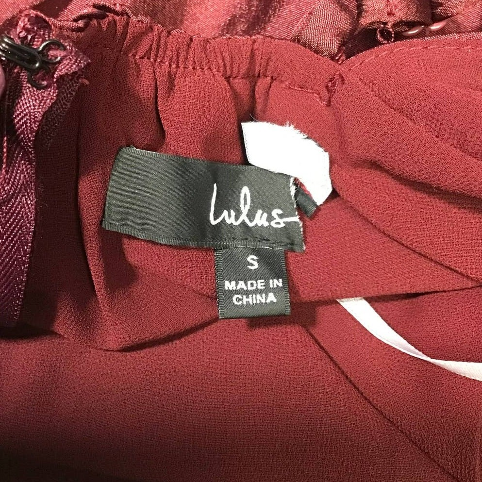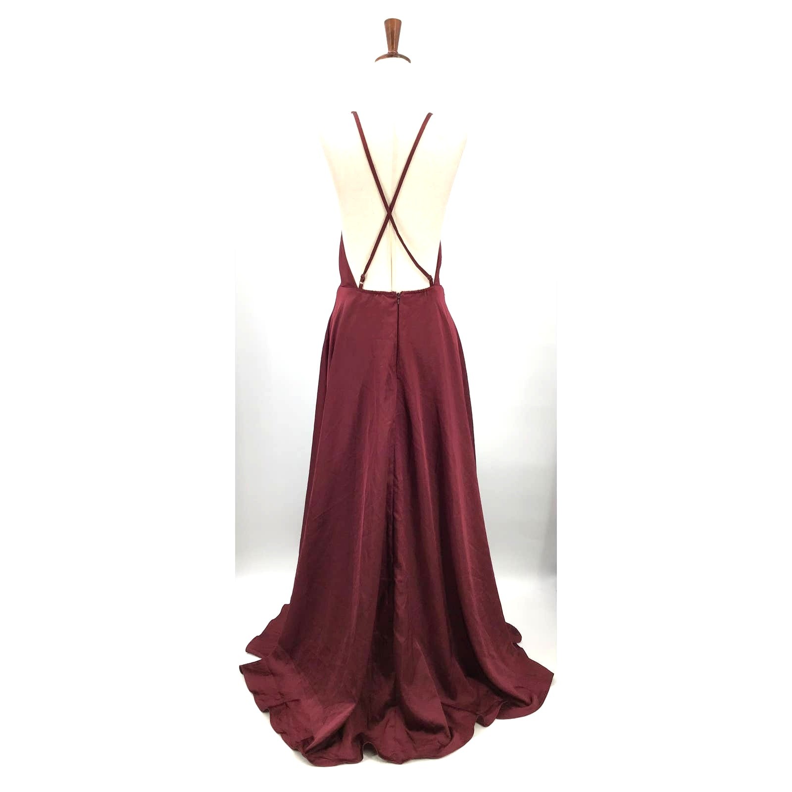как выглядит LULUS Sz S Beauty Burgundy Satin Backless Maxi Dress NEW B145 flaw фото