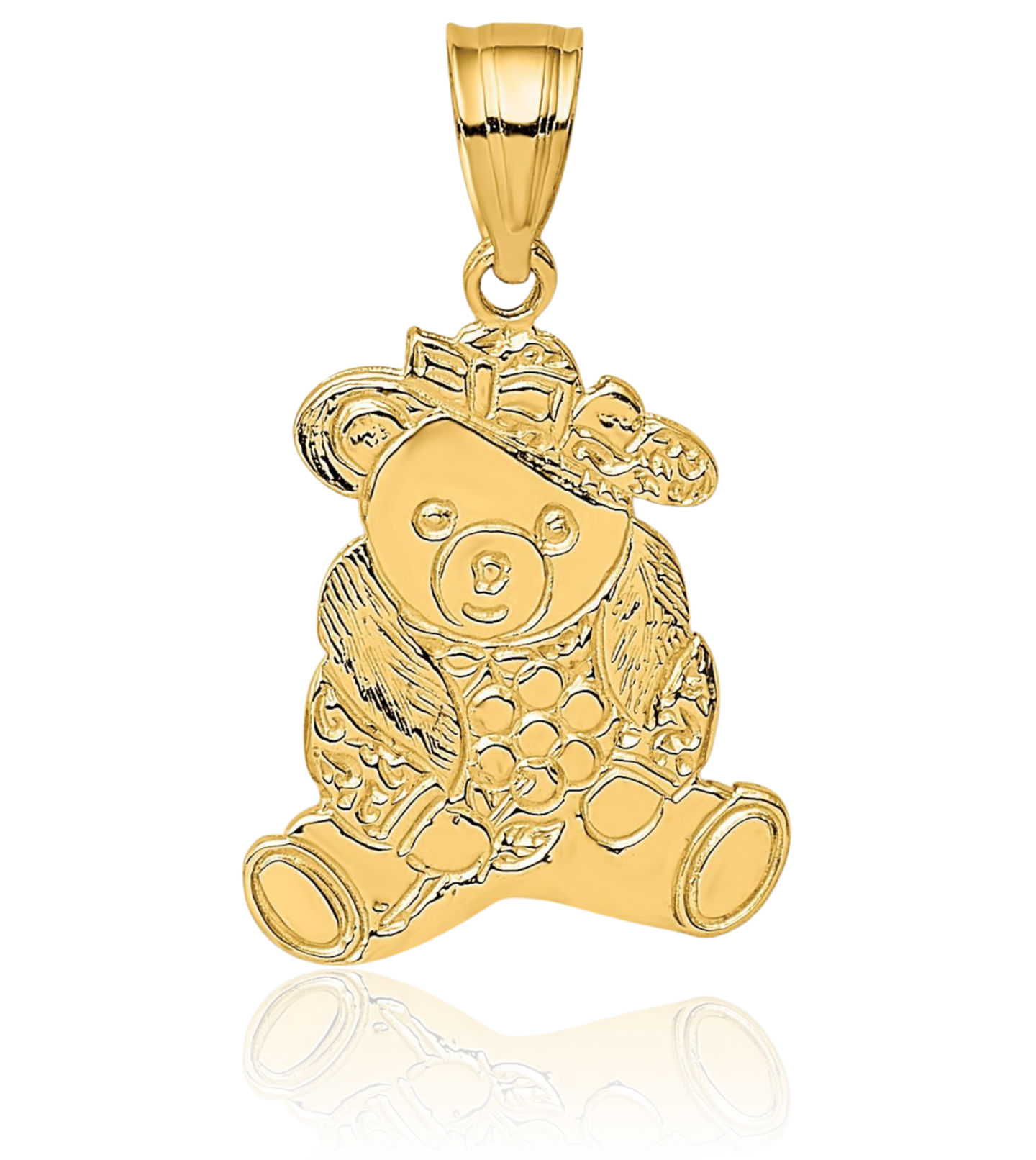 как выглядит 14K Solid Yellow Gold Dressed Up Gummy Teddy Bear Necklace фото
