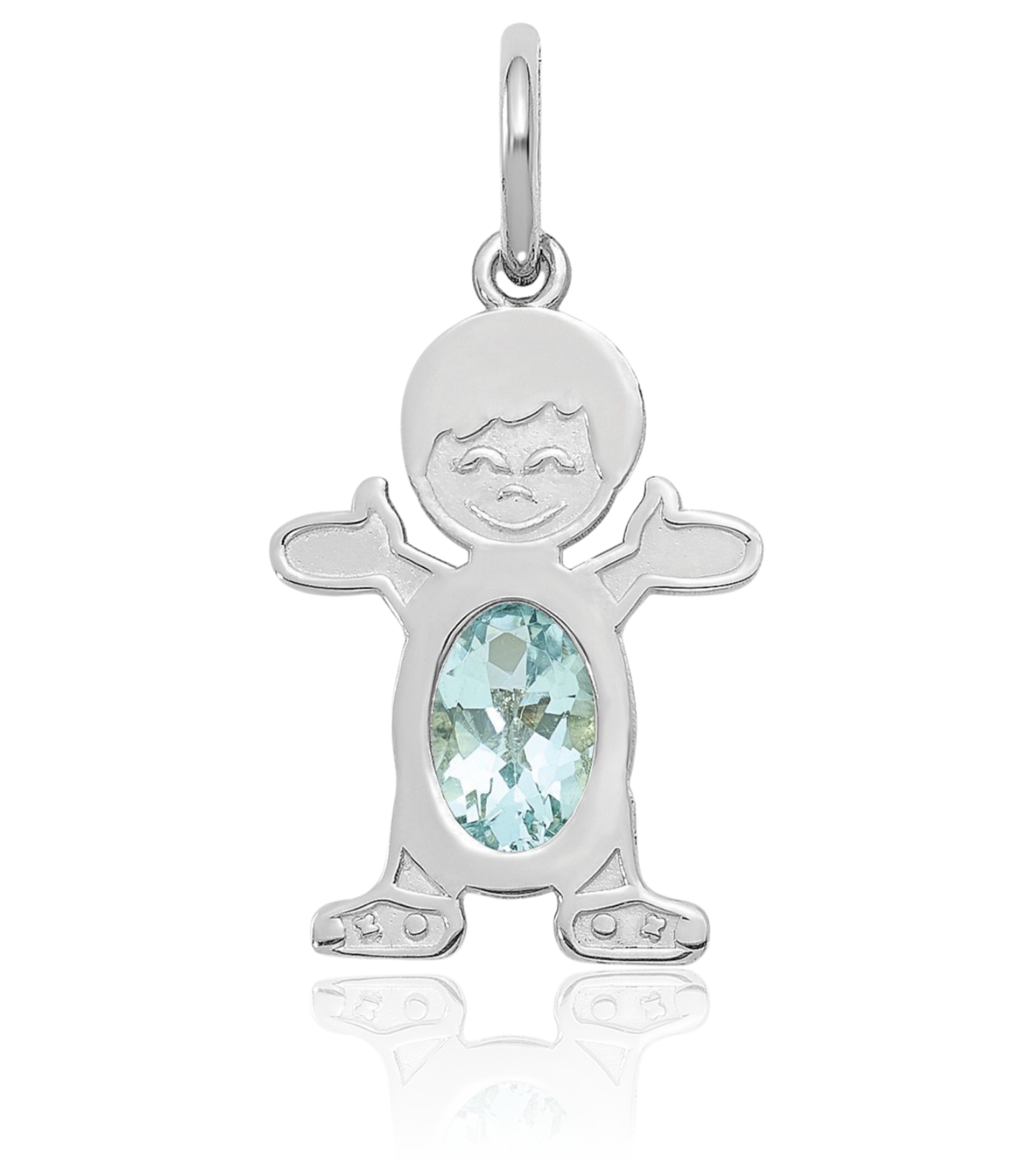 14K Solid White Gold Boy Oval Aquamarine Necklace