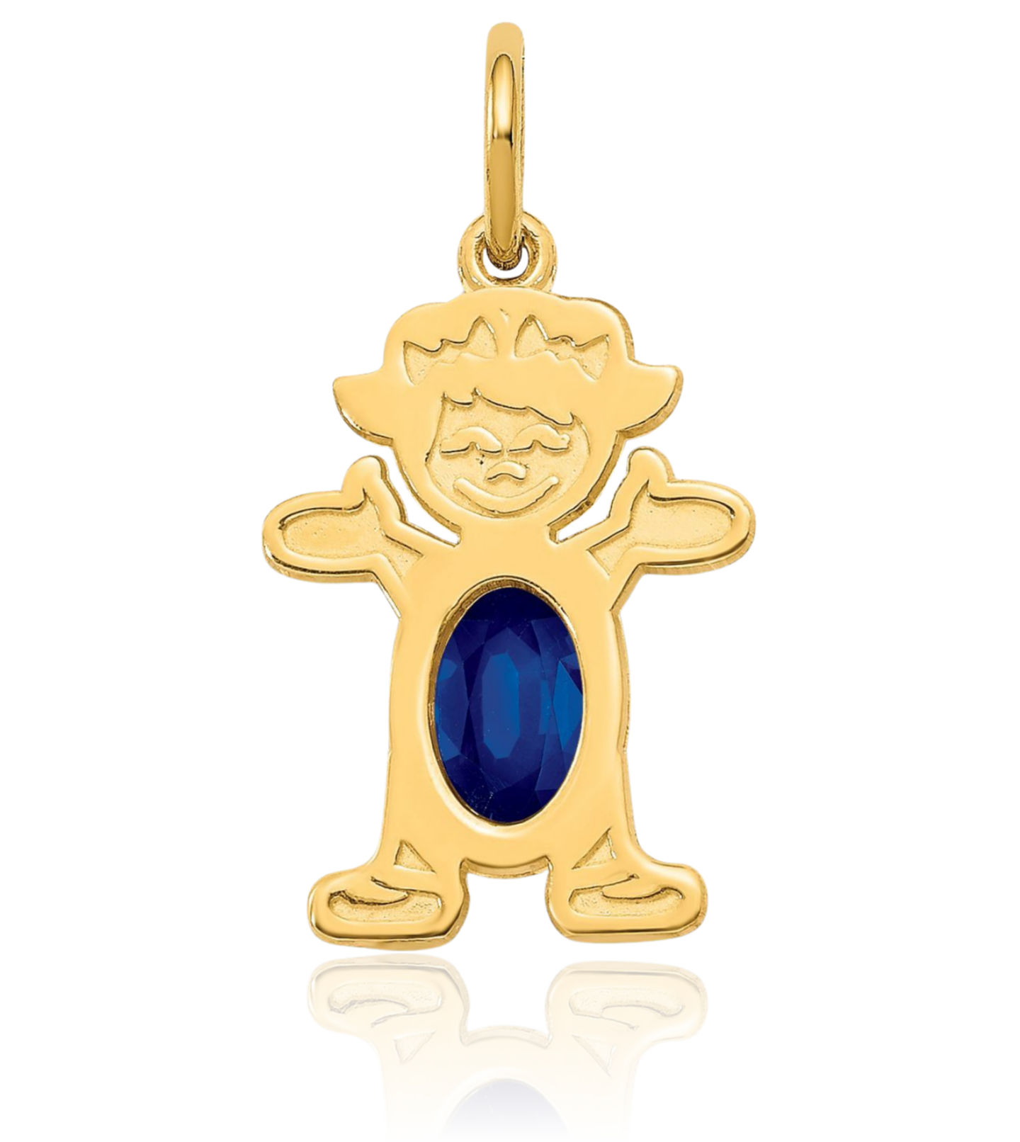 14K Solid Yellow Gold Girl Oval Blue Sapphire Necklace
