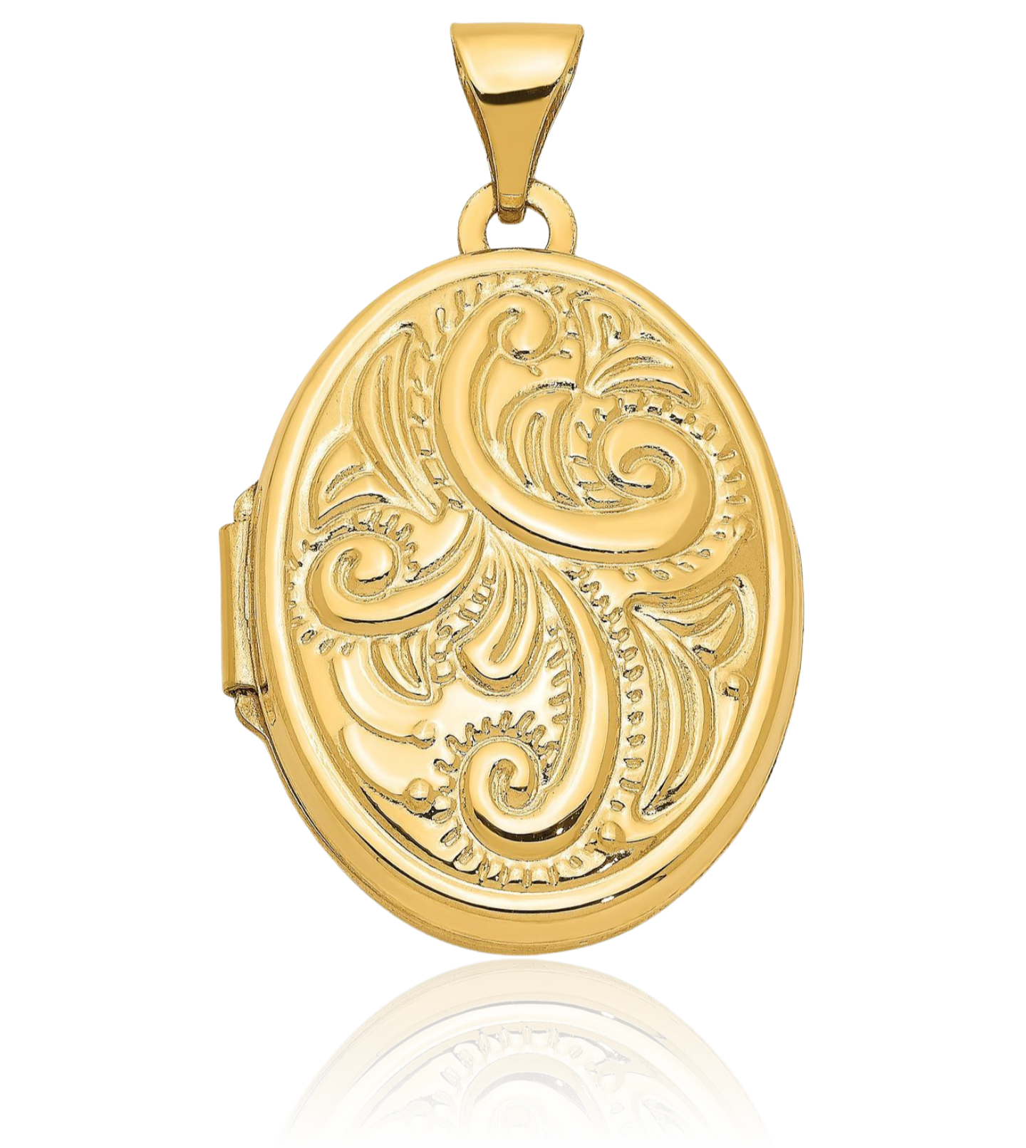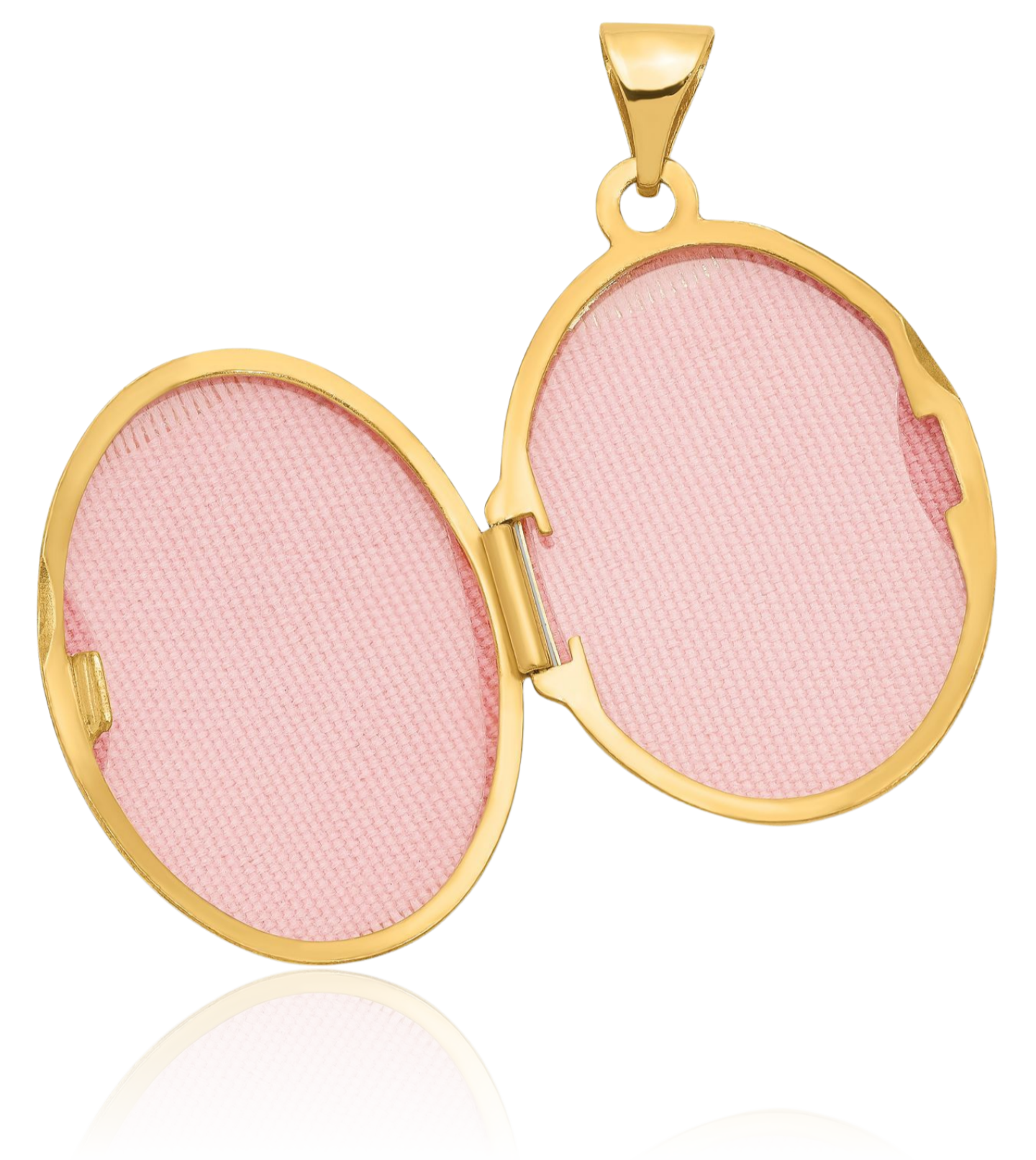 14K Solid Yellow Gold Oval Photo Locket Necklace