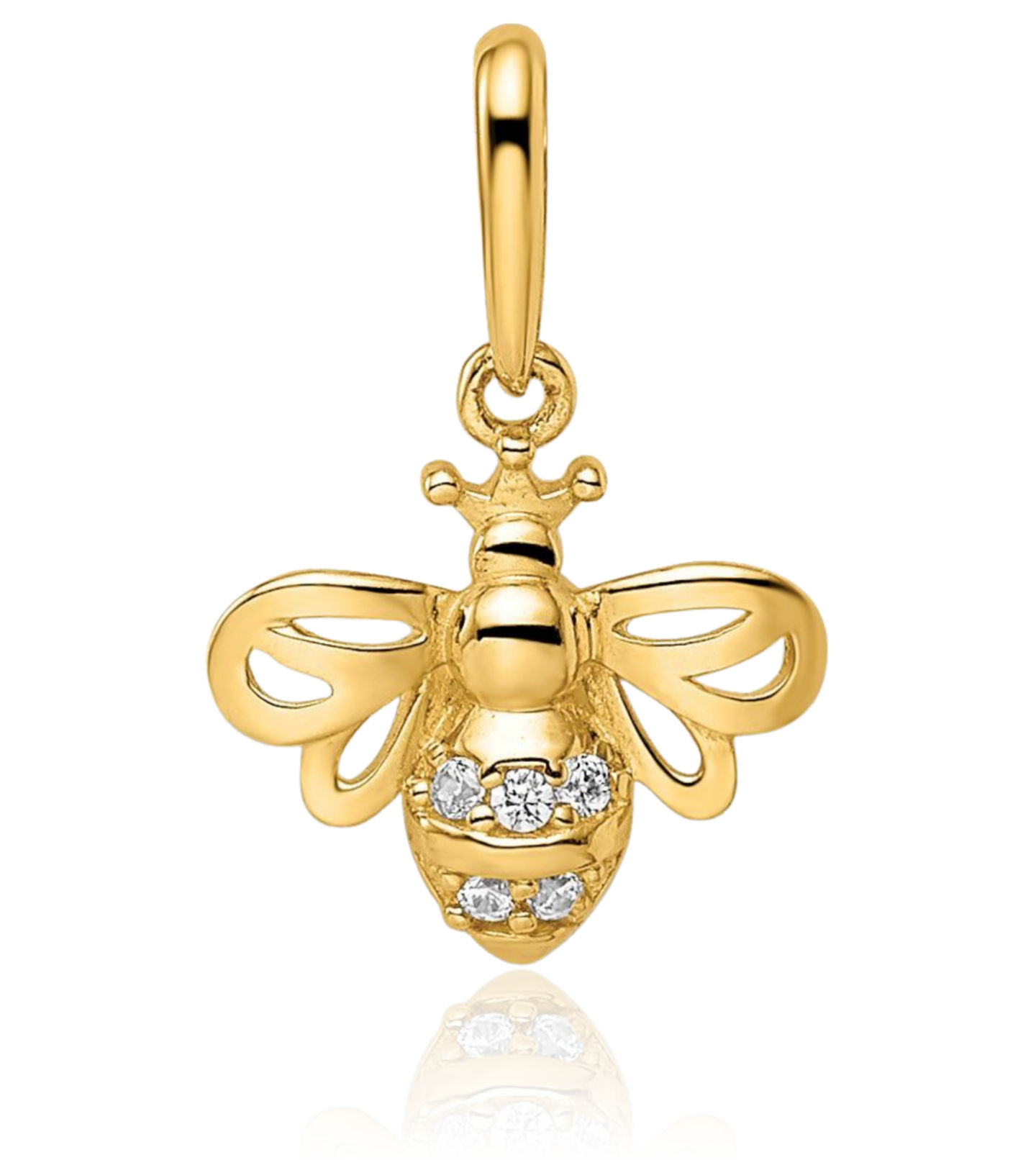 как выглядит 14K Solid Yellow Gold CZ Bee Necklace фото