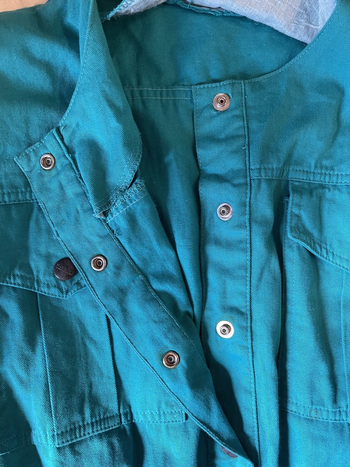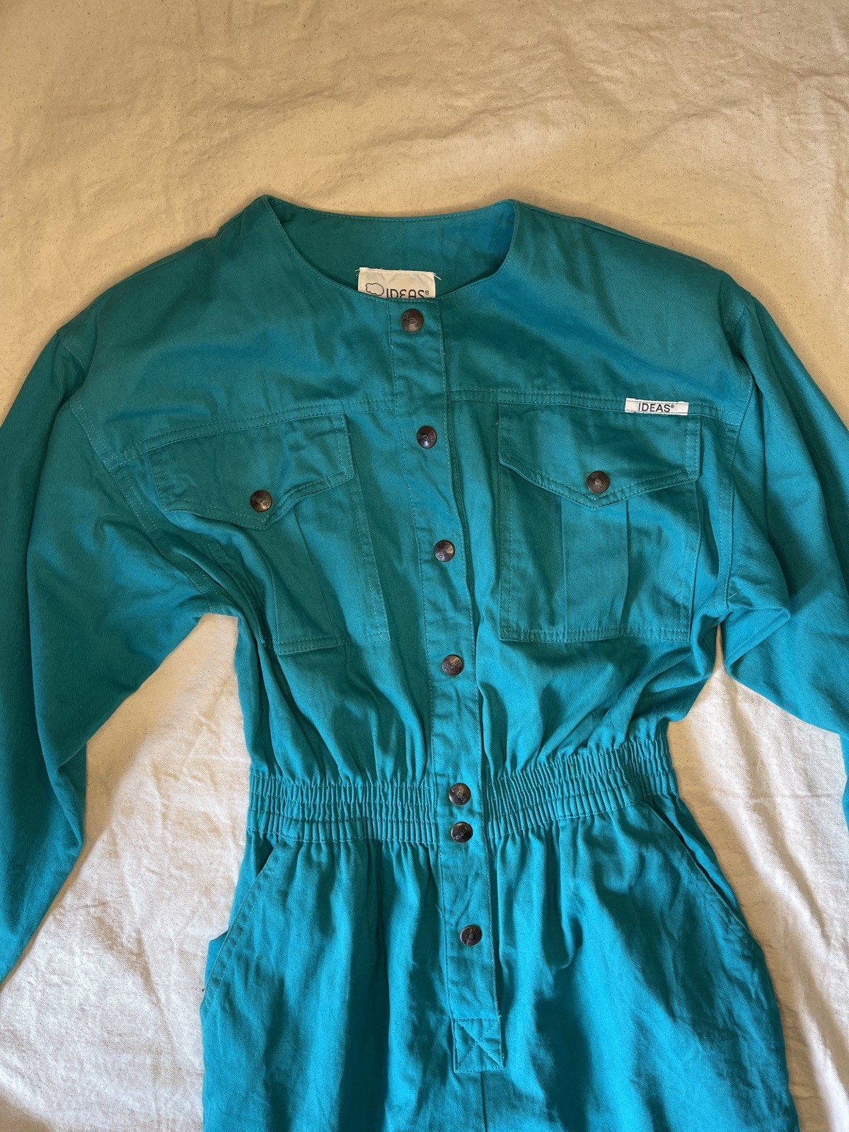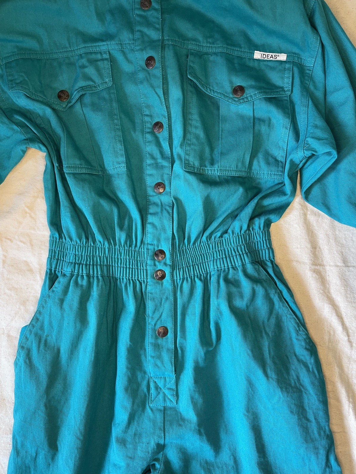 как выглядит Vintage 1980s IDEAS Boiler Suit Jumpsuit Coveralls M Cotton Cranberry Teal фото