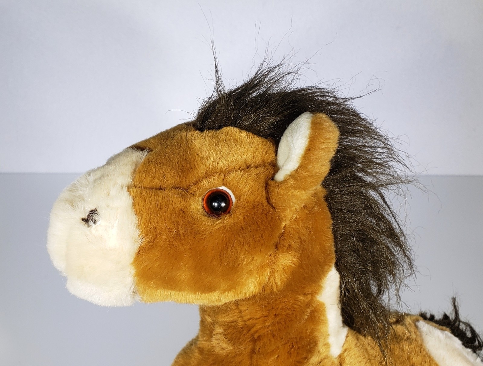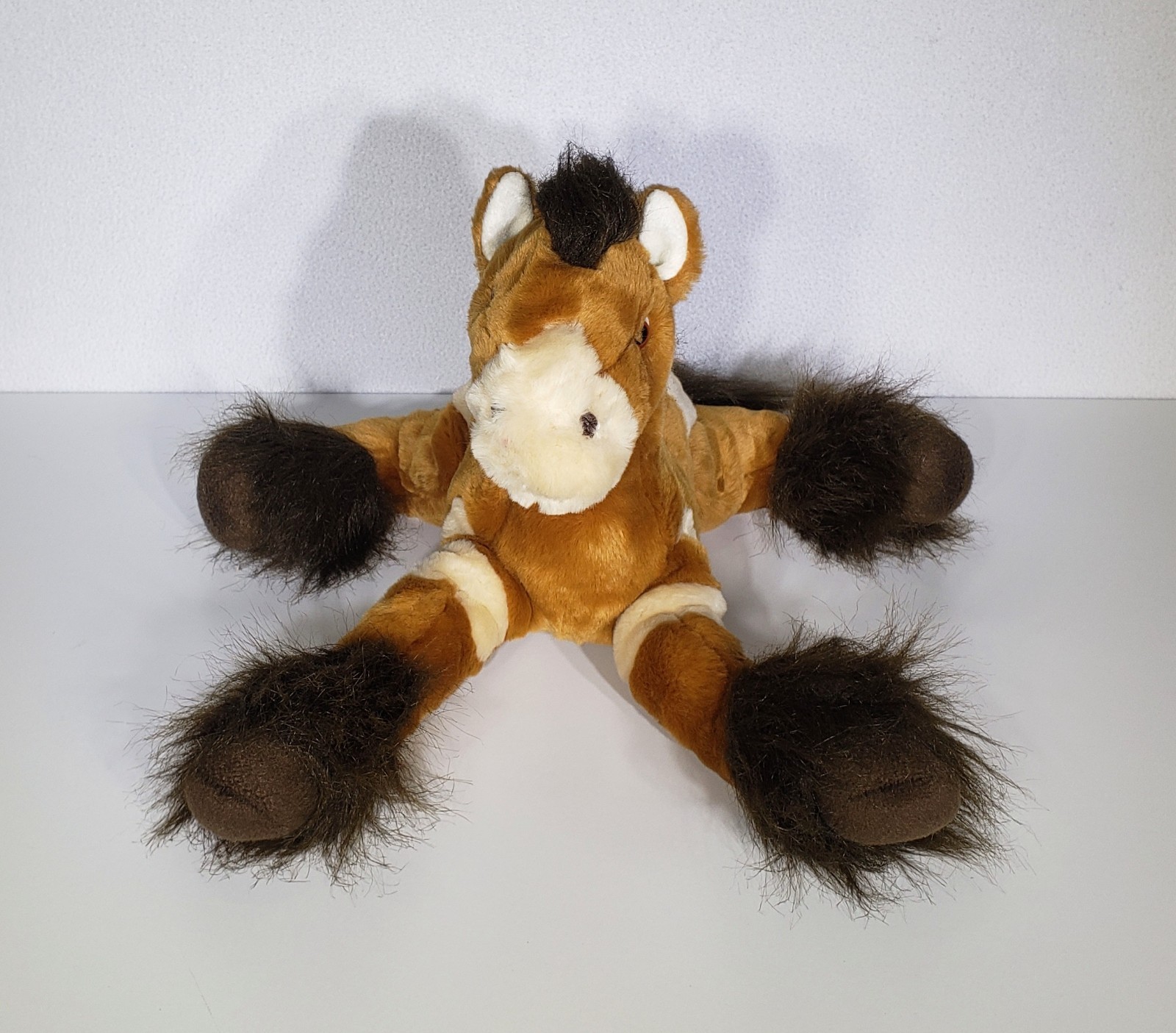 как выглядит VTG Toys R Us Animal Alley Brown Tan Clydesdale Horse Plush Stuffed Toy 13" EUC фото