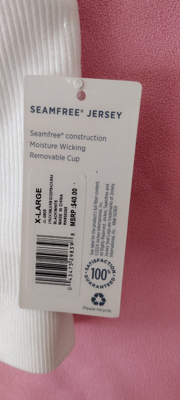 Jockey XL WHITE Seamfree REMOVABLE PADS Jersey Medium Support Sport Bras NEW WT