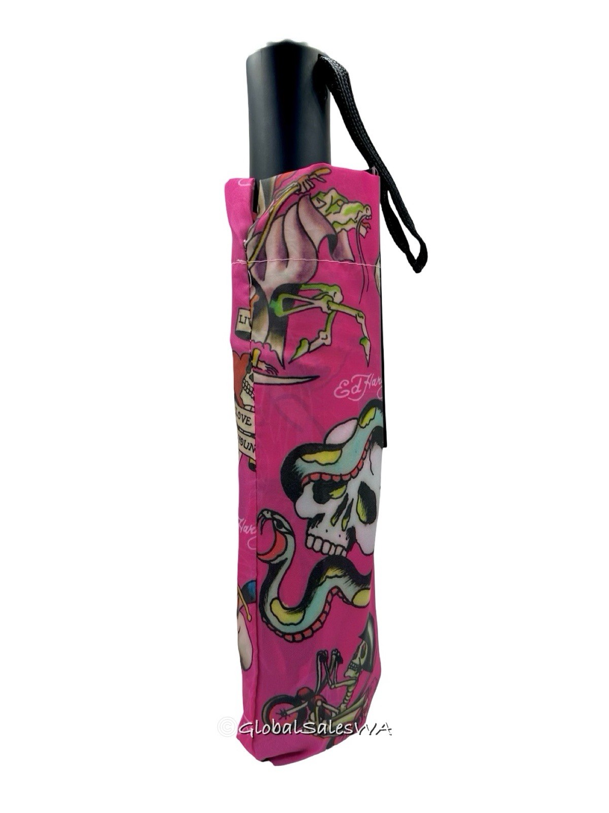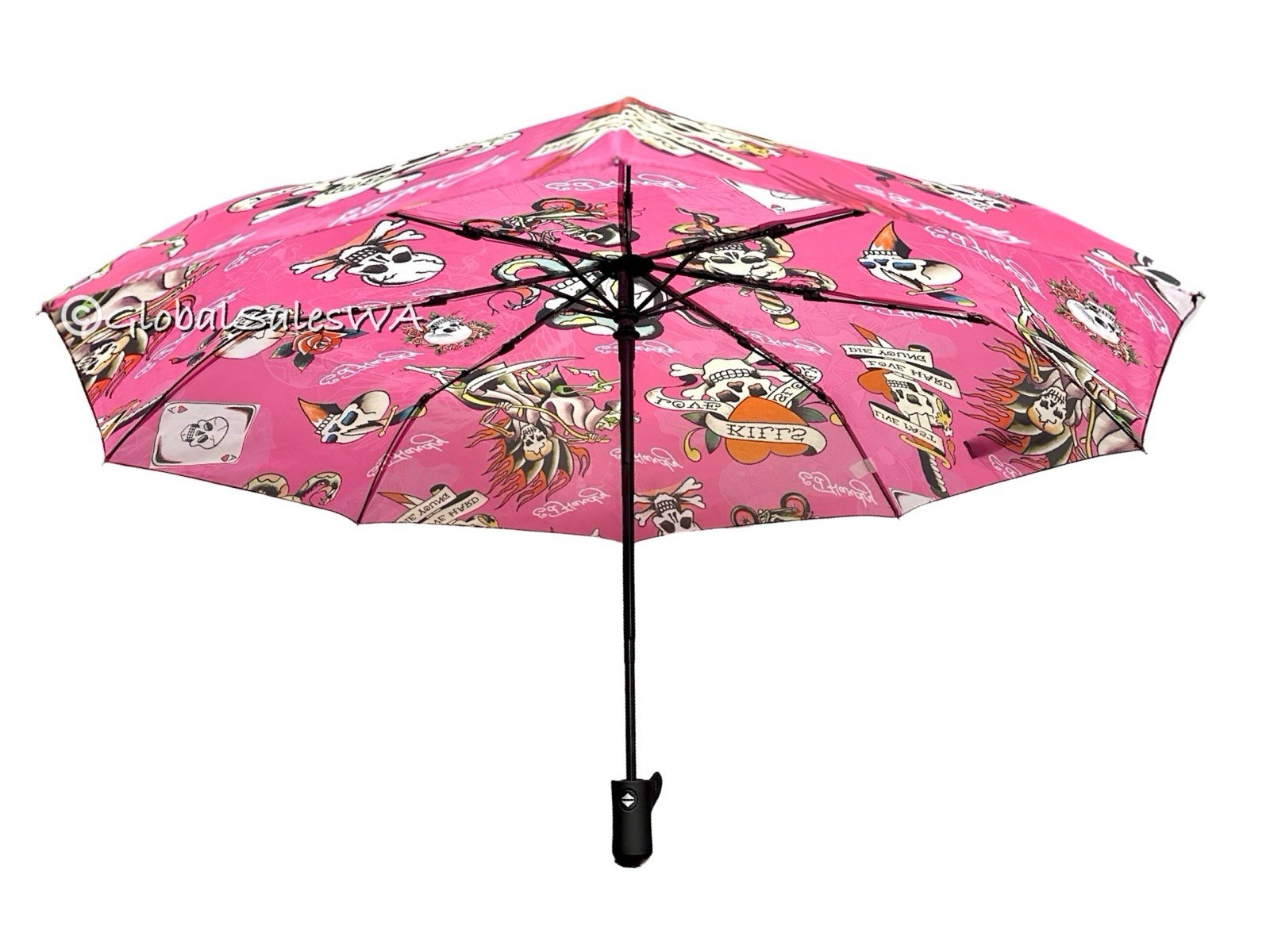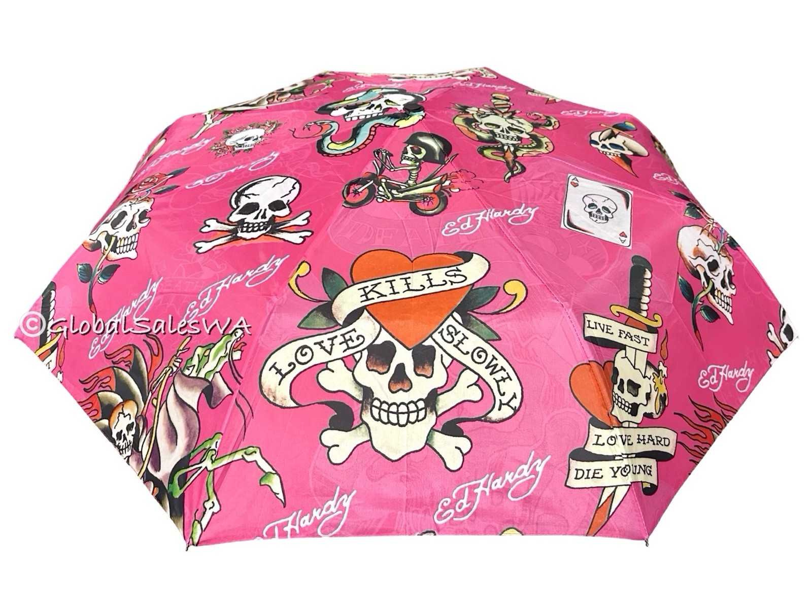 Ed Hardy Tattoo Love Kills Slowly Hot Pink Auto Open Close Compact Umbrella NWT