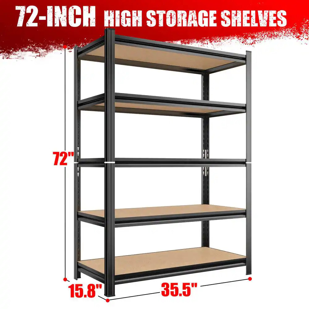 5-Tiers Steel Adjustable Garage Storage Shelving Unit in Black 35.5 In. W X 72