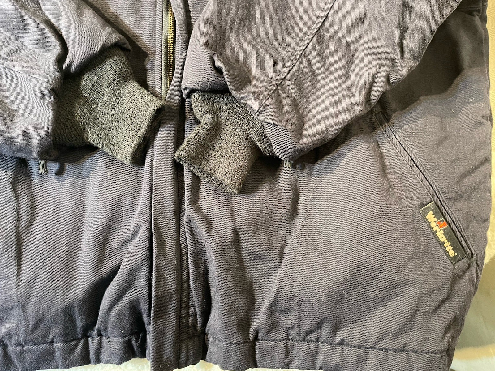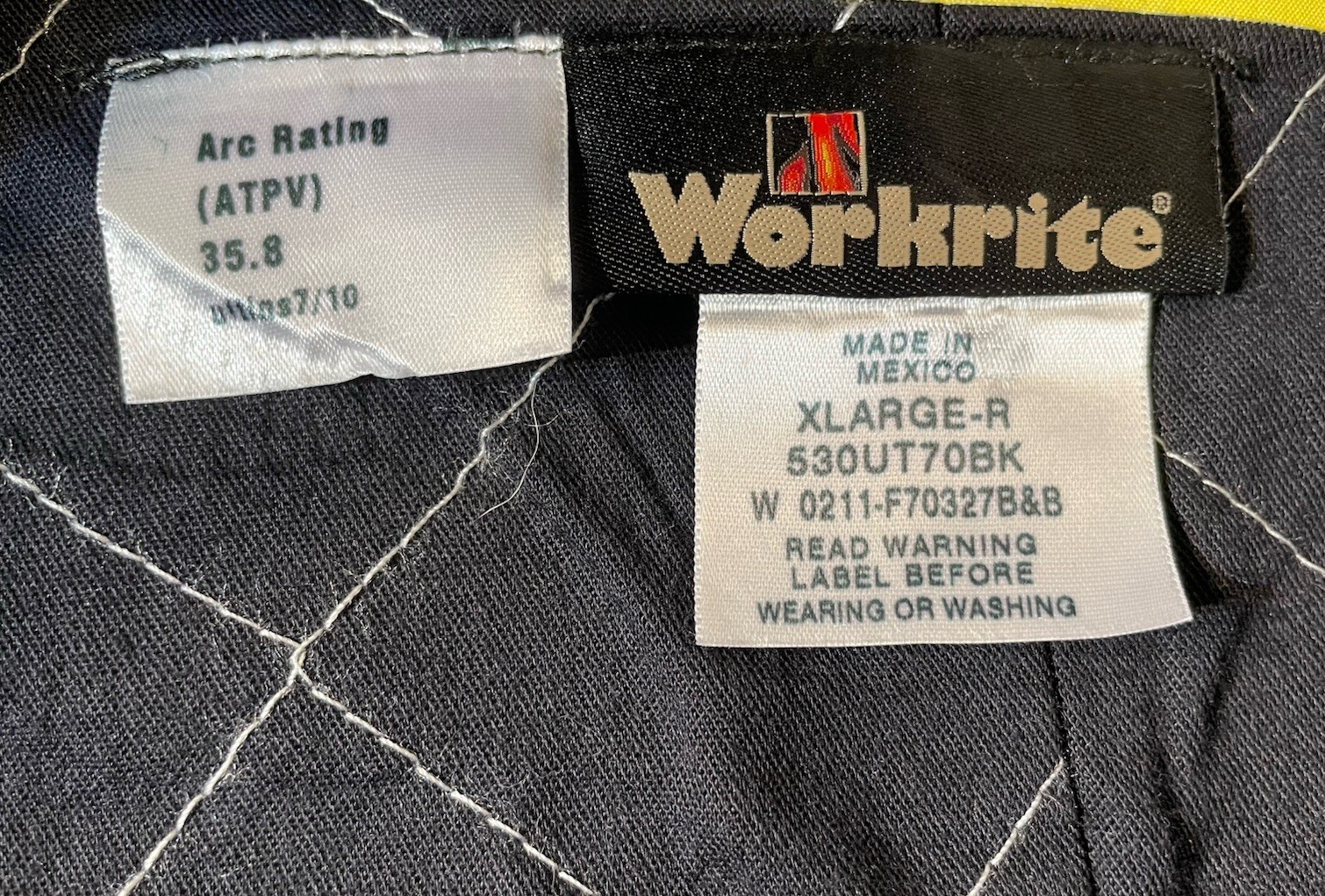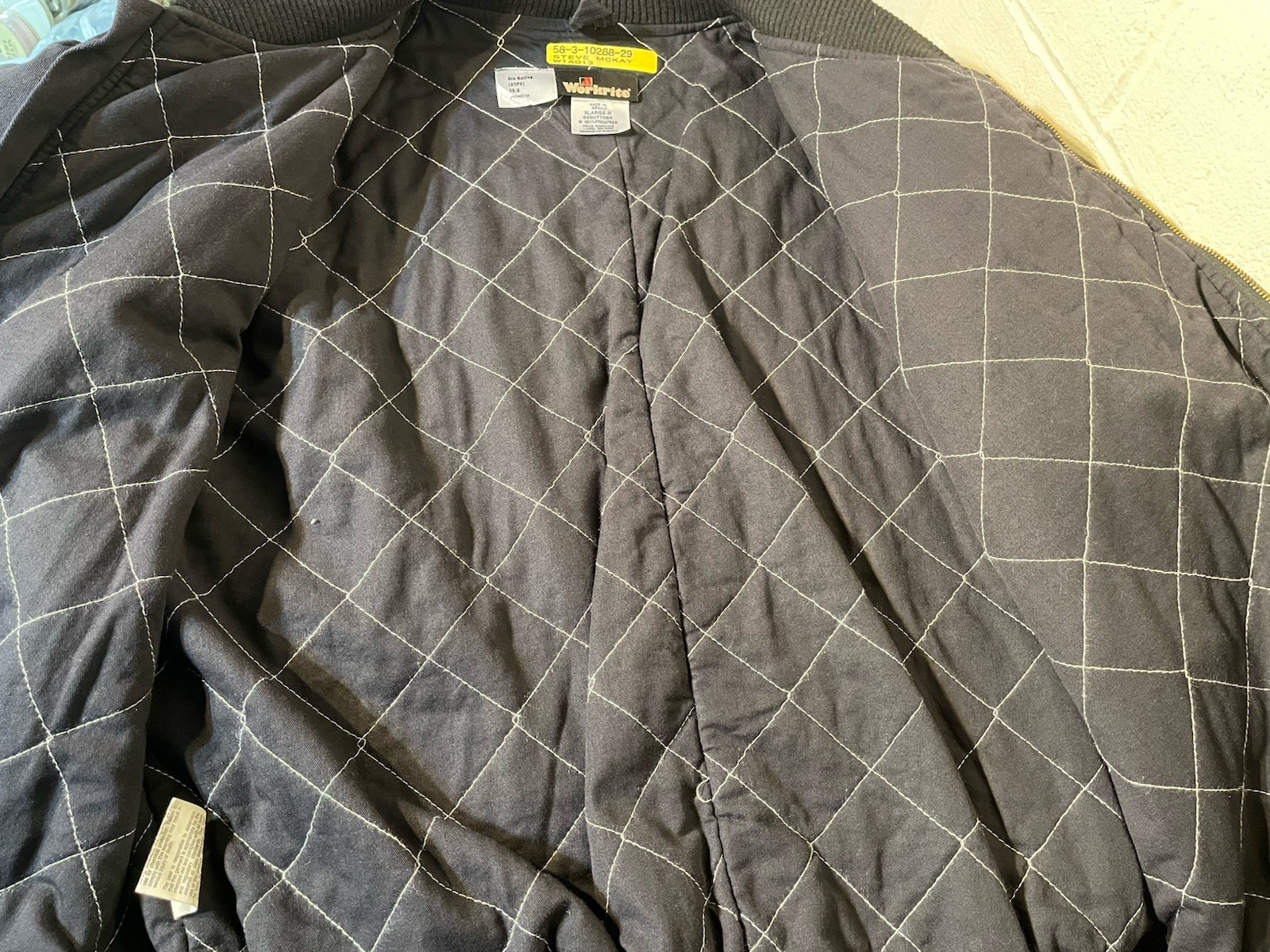 VTG Workrite FR Quilted Work Jacket Mens XL Black Full Zip Insulated Coat HRC3
