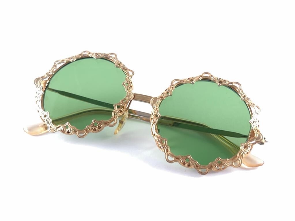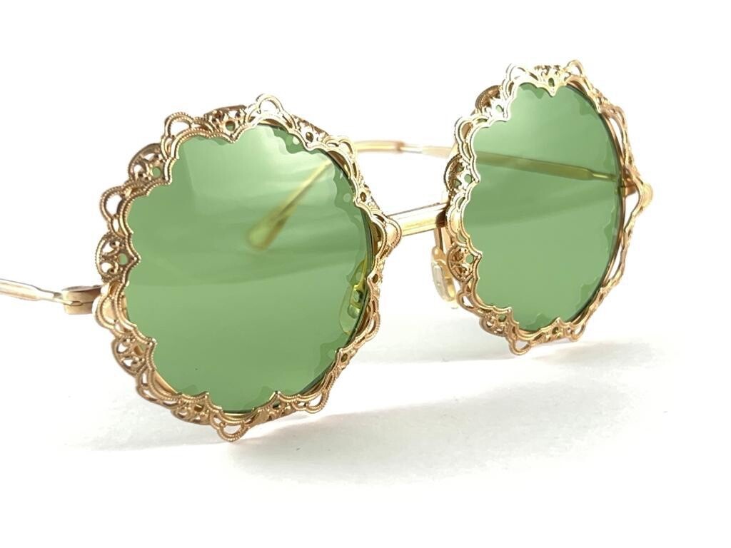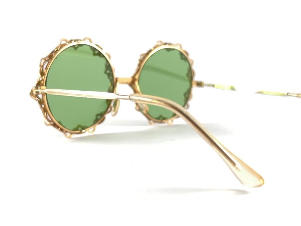 MINT VINTAGE ROUND GOLD FRAME MEDIUM GREEN LENSES 1960'S MADE IN ITALY