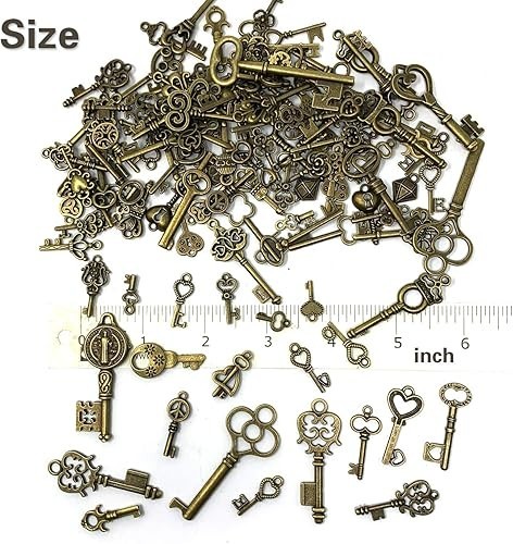 125 PCS Vintage Skeleton Key Set Charms, Mixed Antique Style Bronze Brass for P