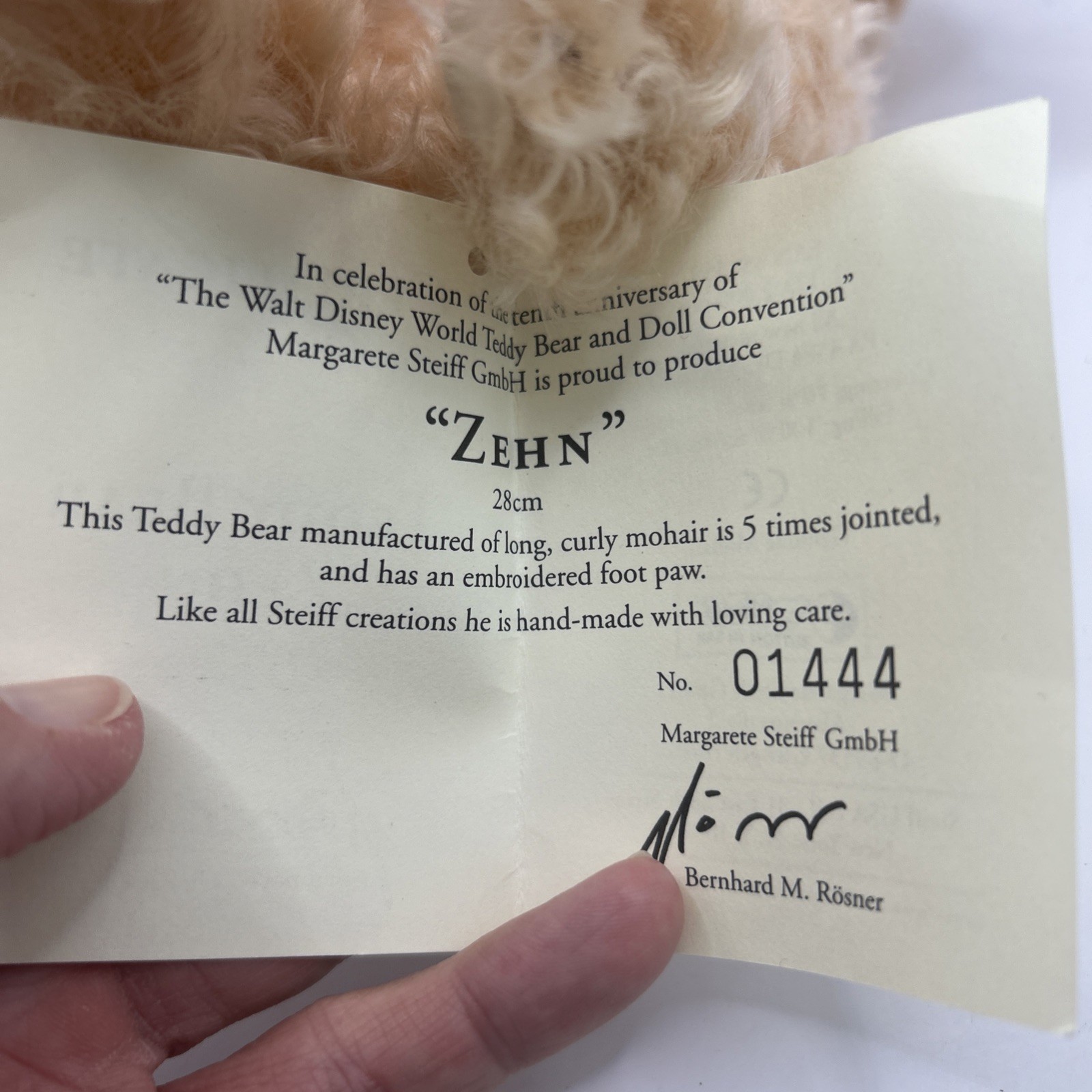 • Steiff 1997 Disney World Teddy Bear Convention 10th Anniv Zehn 01444 Signed