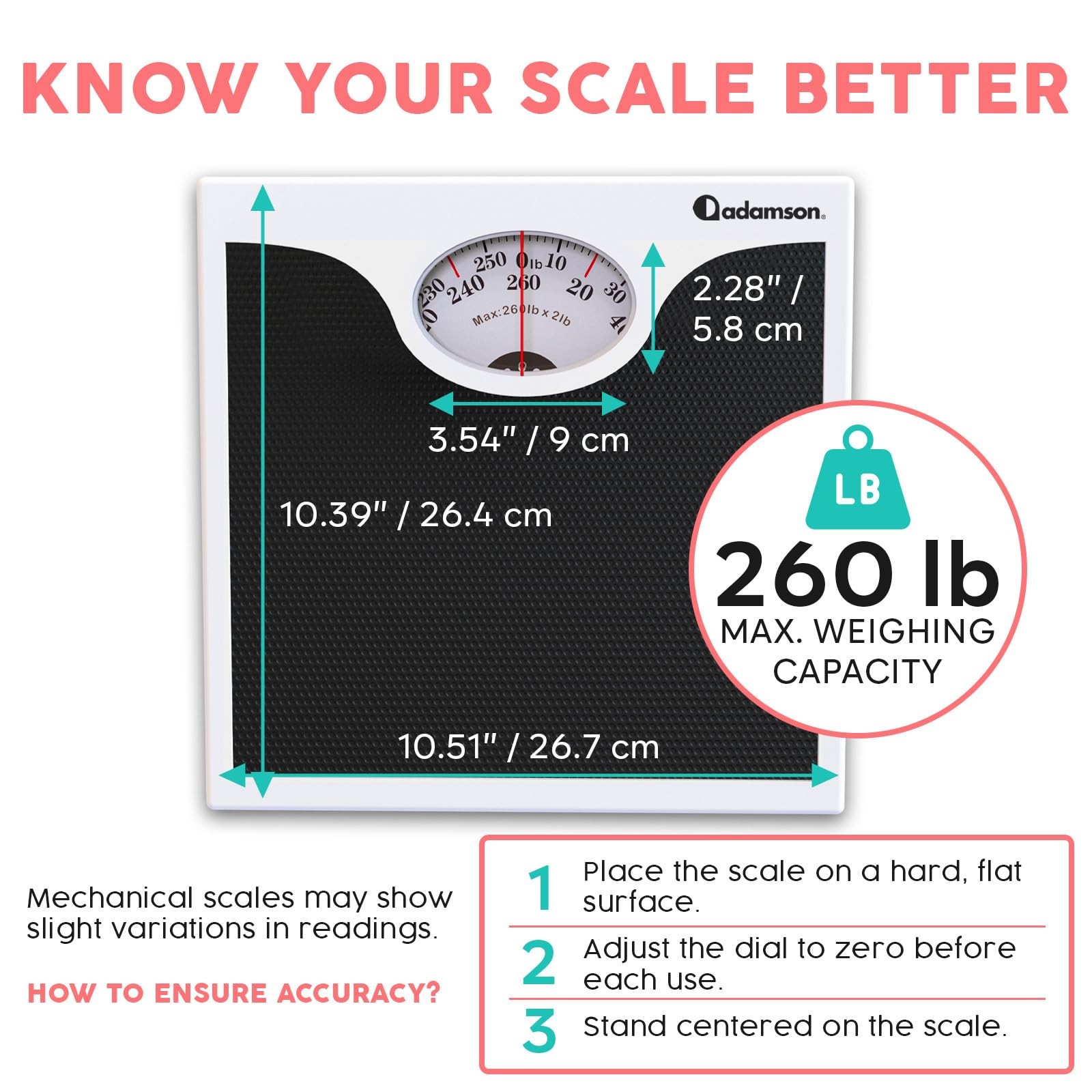 A22 Bathroom Scale for Body Weight - Up to 260 LB - Anti-Skid Rubber Surface ...