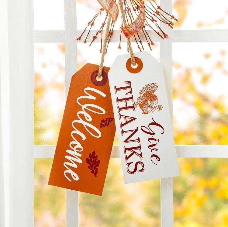 Особенности: Decorative, Hanging, Indoor, Outdoor, Ready To Hang, White "Give Thanks" Door Hanger, Orange "Welcome" Door Hanger, Plaid Bow, Twine For Hanging
