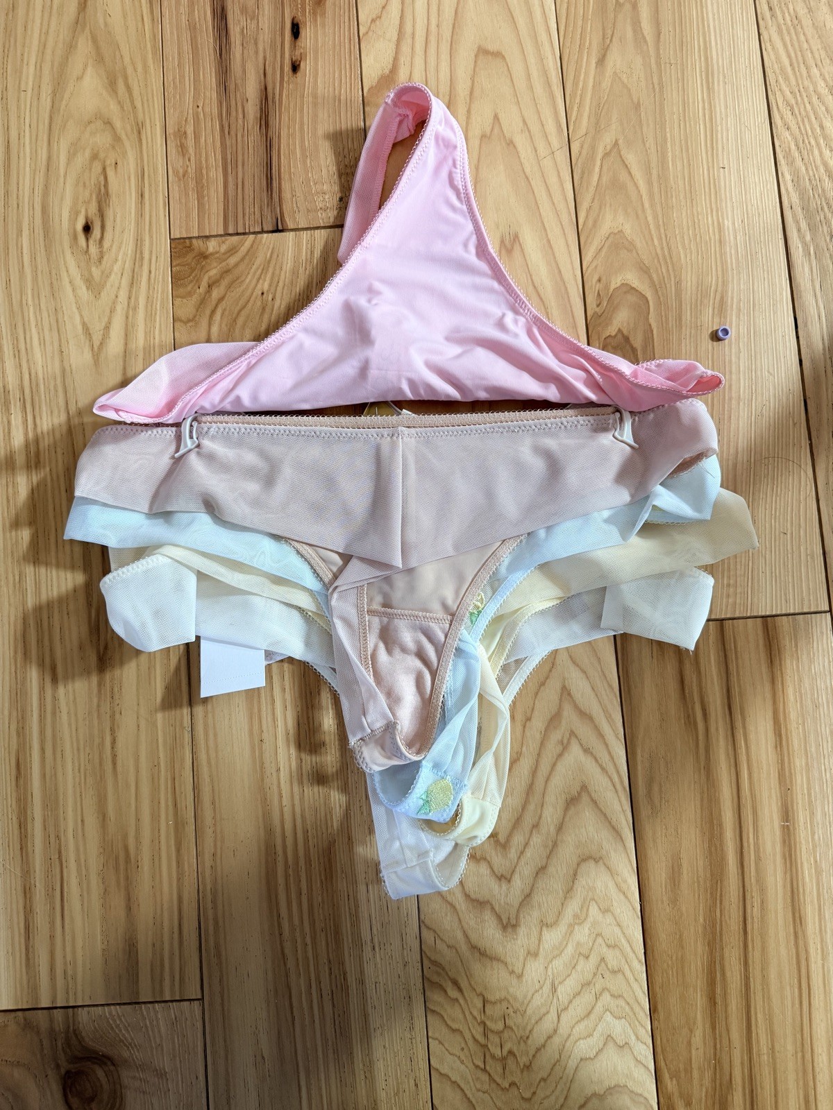 как выглядит Jessica Simpson Women s Panties Sz Large Pkg/5 Ultra flirty Thong Multi Color фото