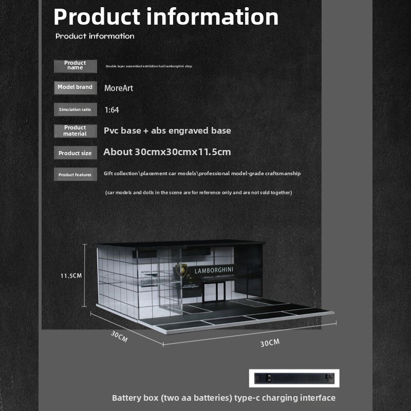 1/64 Diorama Diecast Garage Model LED Lighting Parking Lot Display Case Scene US