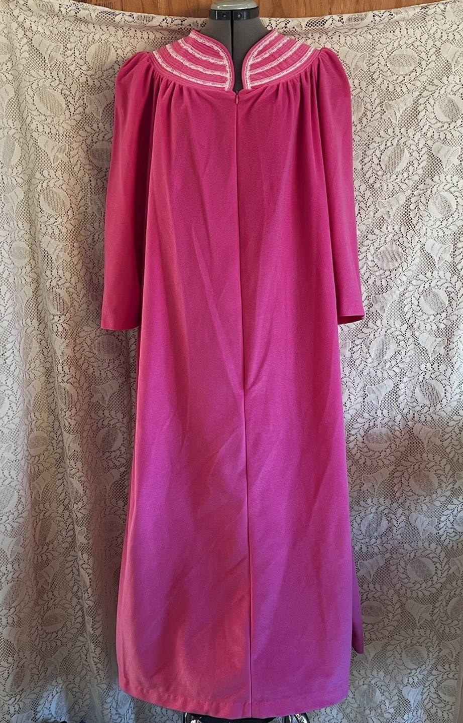 VTG Bright Pink Long-Sleeve Nightgown House Coat Robe with Striped Collar Design