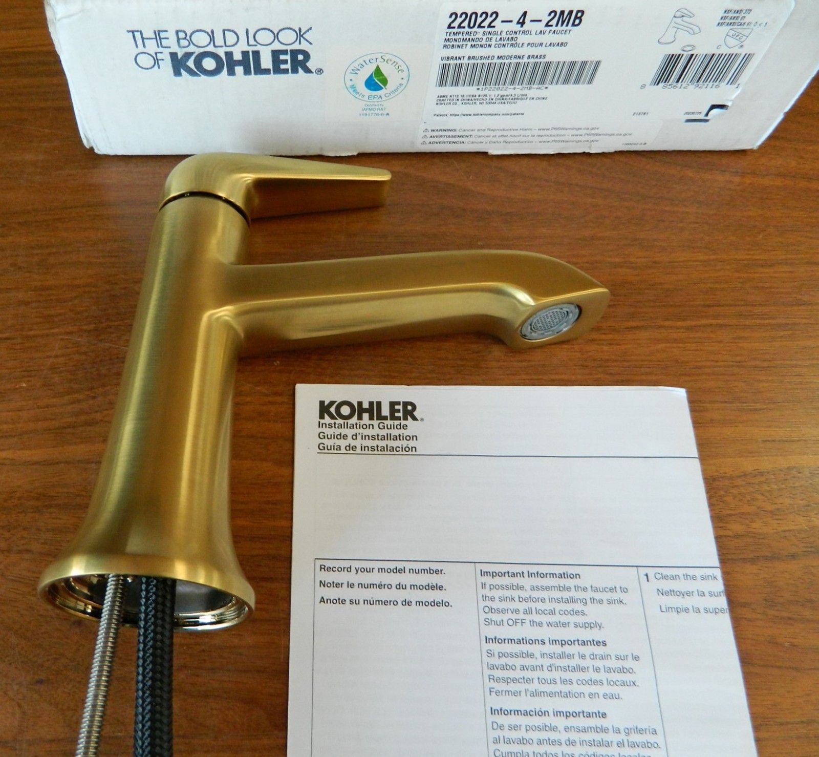 Kohler K-22022-4-2MB Tempered bathroom sink faucet, Brushed Moderne Brass