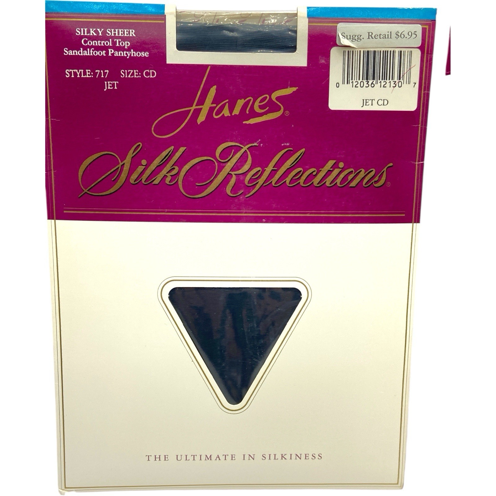 Vintage Hanes Silk Reflections Control Top Sandalfoot Pantyhose Jet Black Navy