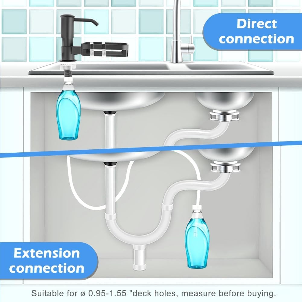 Kitchen Sink Soap Dispenser Pump Black, 47 Tube Countertop Refill-Free w/ Baske