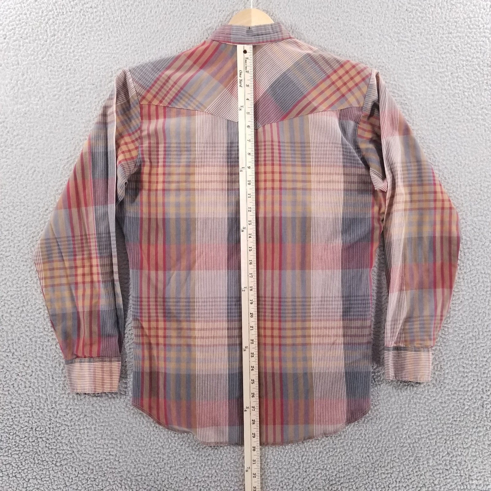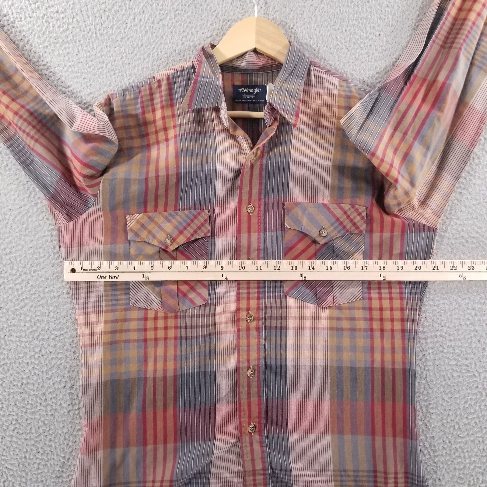 как выглядит Vtg Wrangler Shirt Mens Medium Brown Plaid USA Made Western Lightweight 70s 80s фото