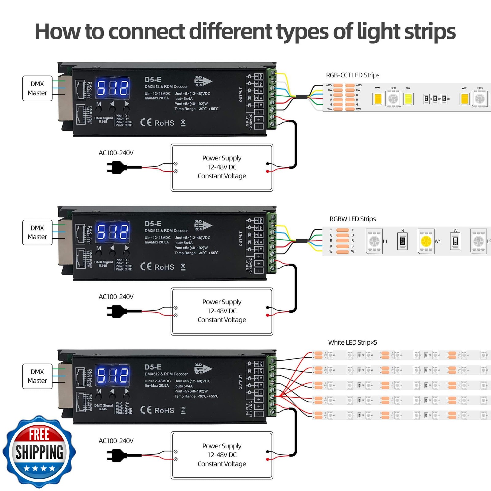 5 Channel DMX Decoder with RDM Digital Display,DMX512 Dimmer Driver PWM RGBCC