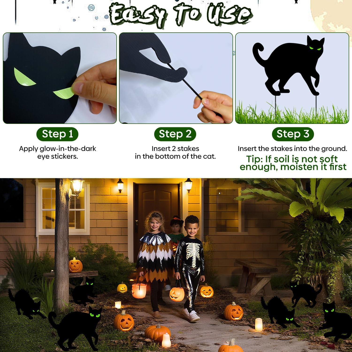 Halloween Decorations Outdoor - 6pc Corrugated Plastic Black Cat Decor w/ Stakes