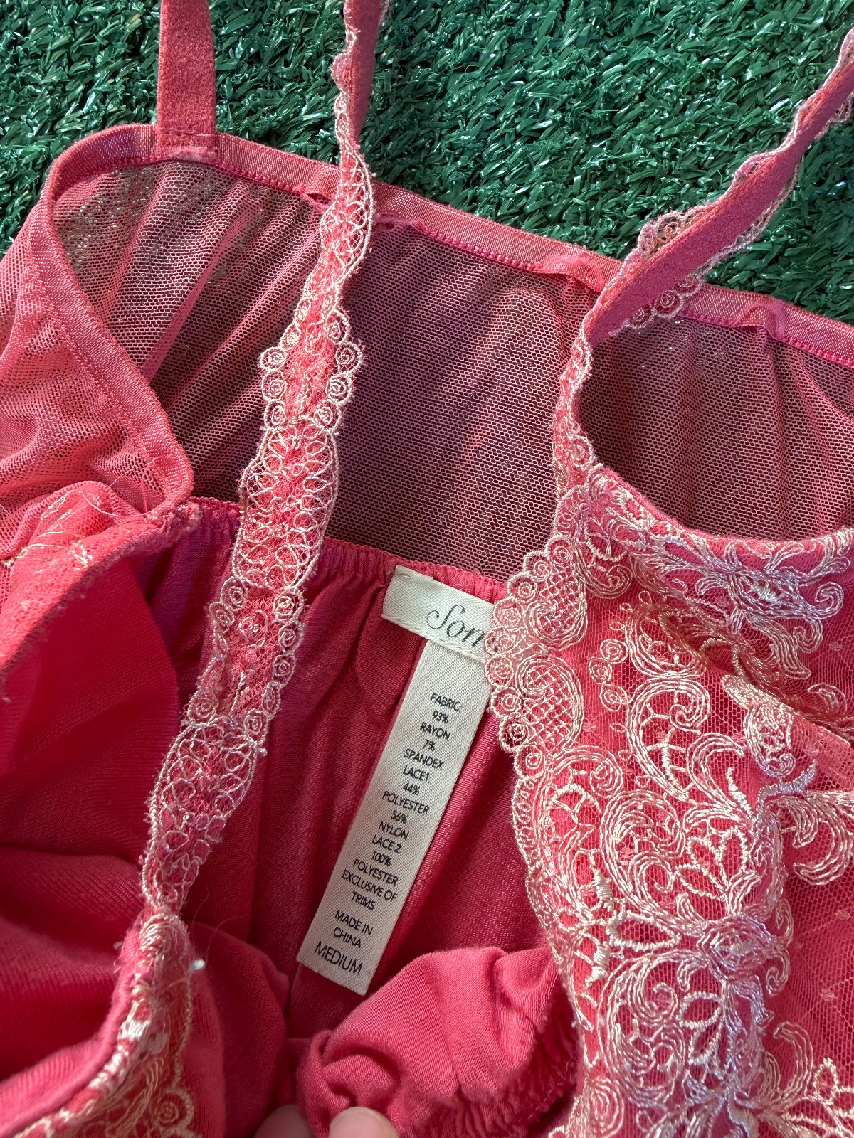 как выглядит Soma Womens Pink Lace Trim Babydoll Slip Dress Lingerie Coquette Fairy Y2K Sz M фото