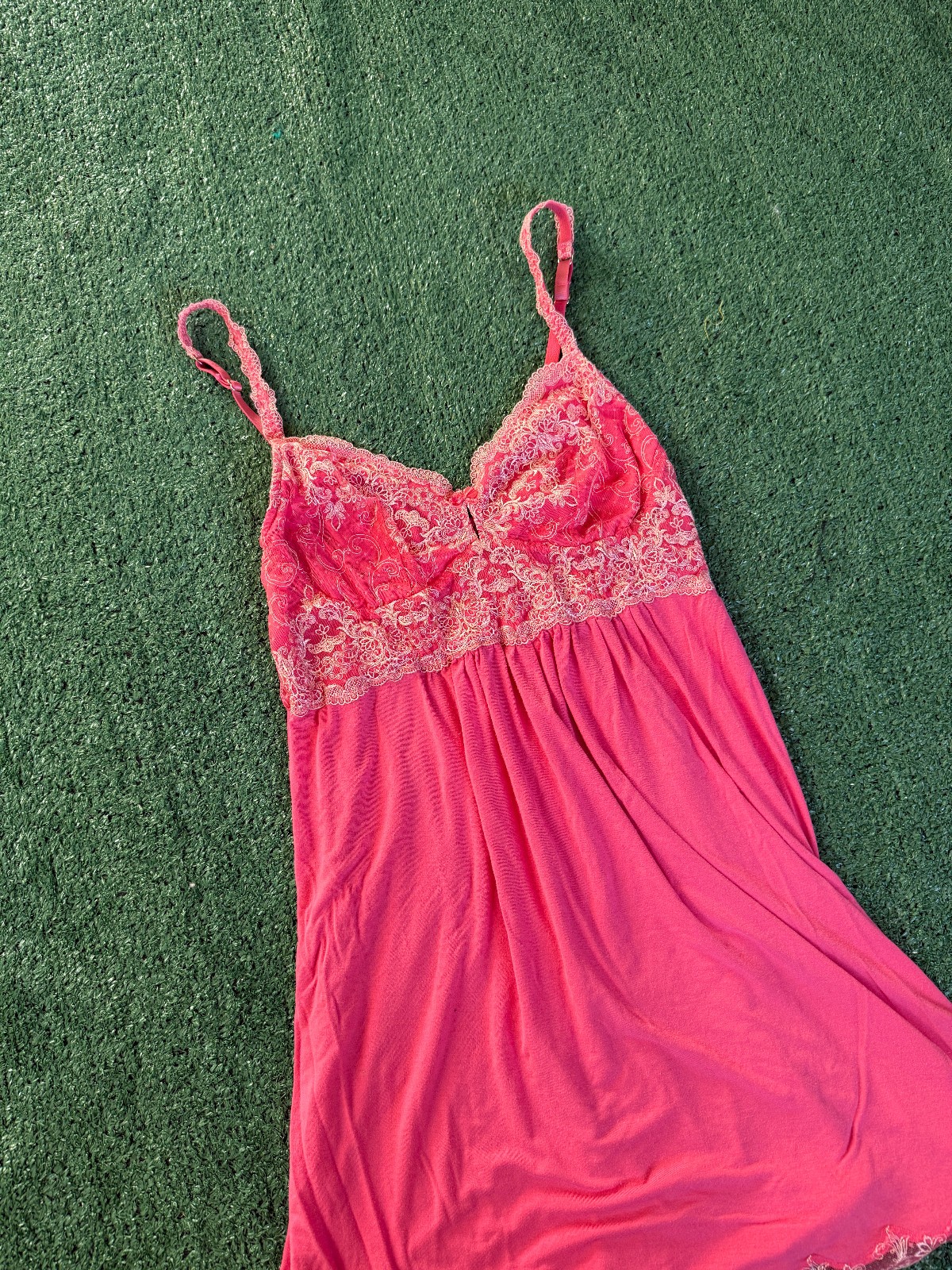 Soma Womens Pink Lace Trim Babydoll Slip Dress Lingerie Coquette Fairy Y2K Sz M