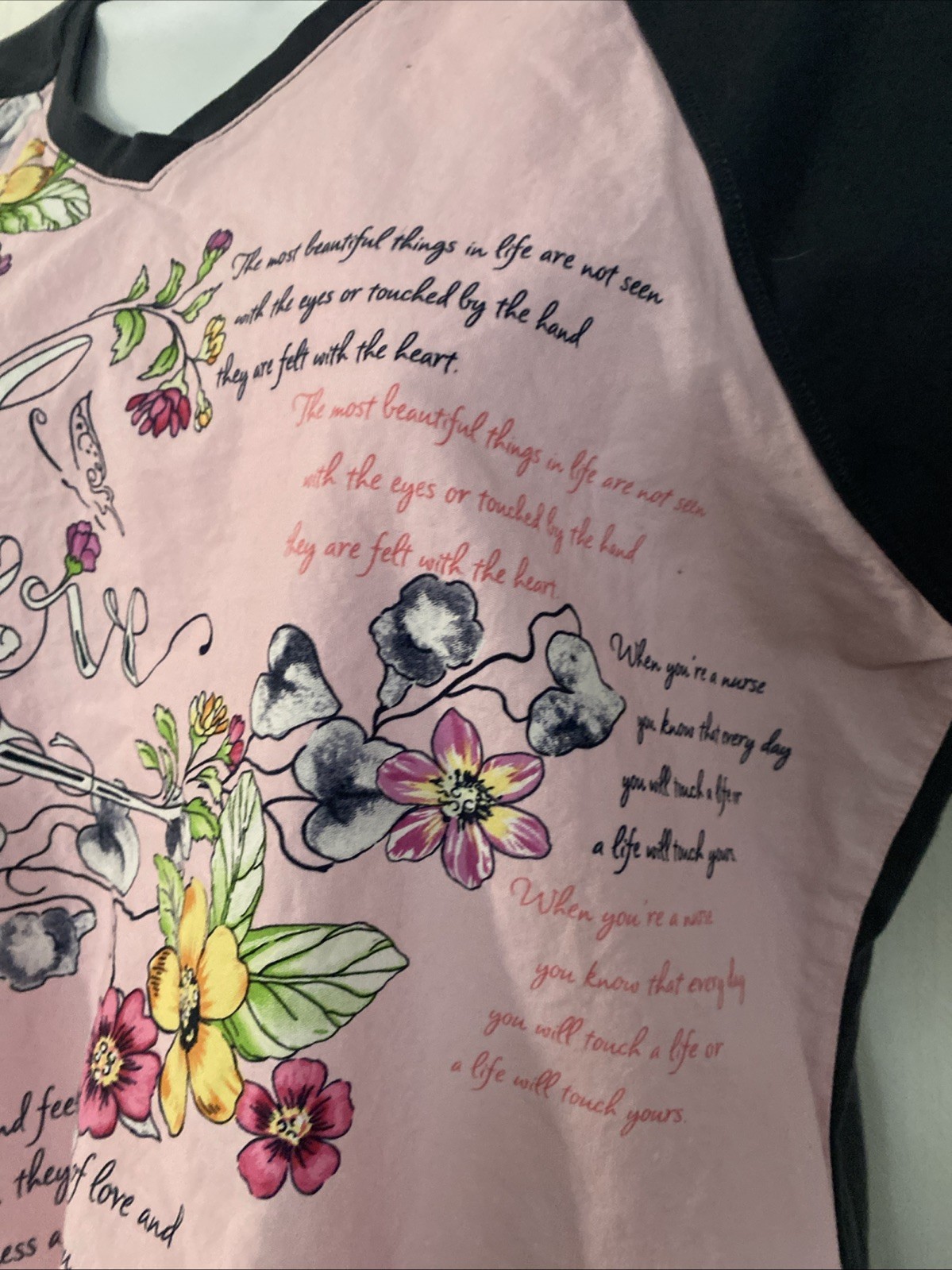 Cherokee Runway Women's Love Heals V-Neck Printed Scrub Top Style 3638CB Size M