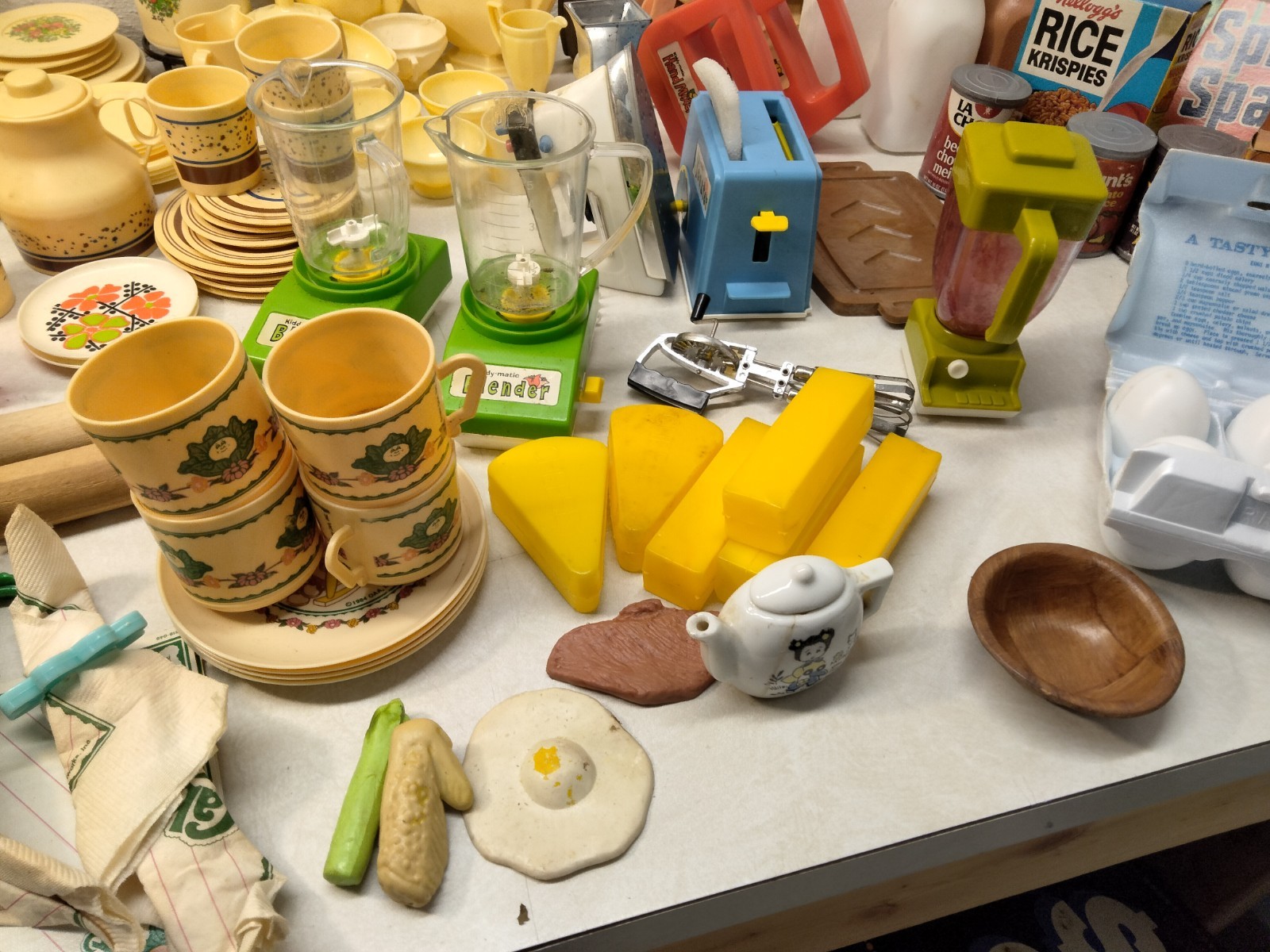 Large Lot Of Vintage Play Kitchen Food Fake Dishes Utensils Appliances